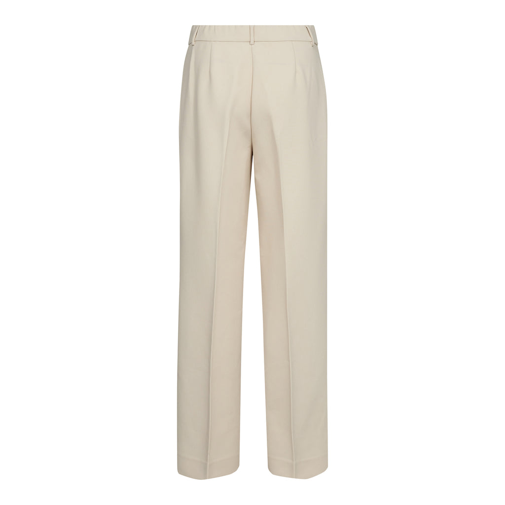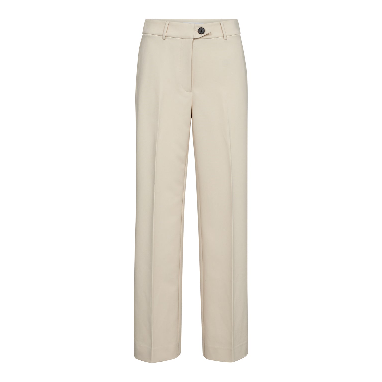 Lækre bukser fra Co'couture med et smart enkelt udtryk. Bukserne har linning med bæltestropper, knap og lynlås foran, paspolerede lommer bag på. og vidde i benene Bukserne er til den store side, og vi anbefaler at gå en størrelse ned.