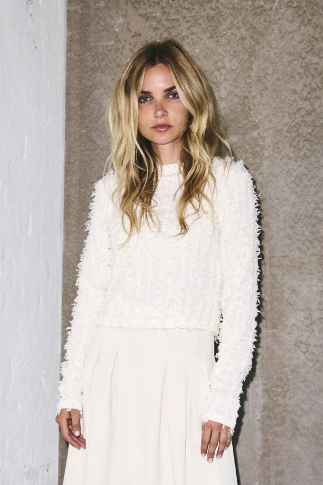 Skøn bluse fra Co'Couture med masser af stretch. Blusen har tætsiddende pasform uden at være stram og så er den fyldt med frynser.