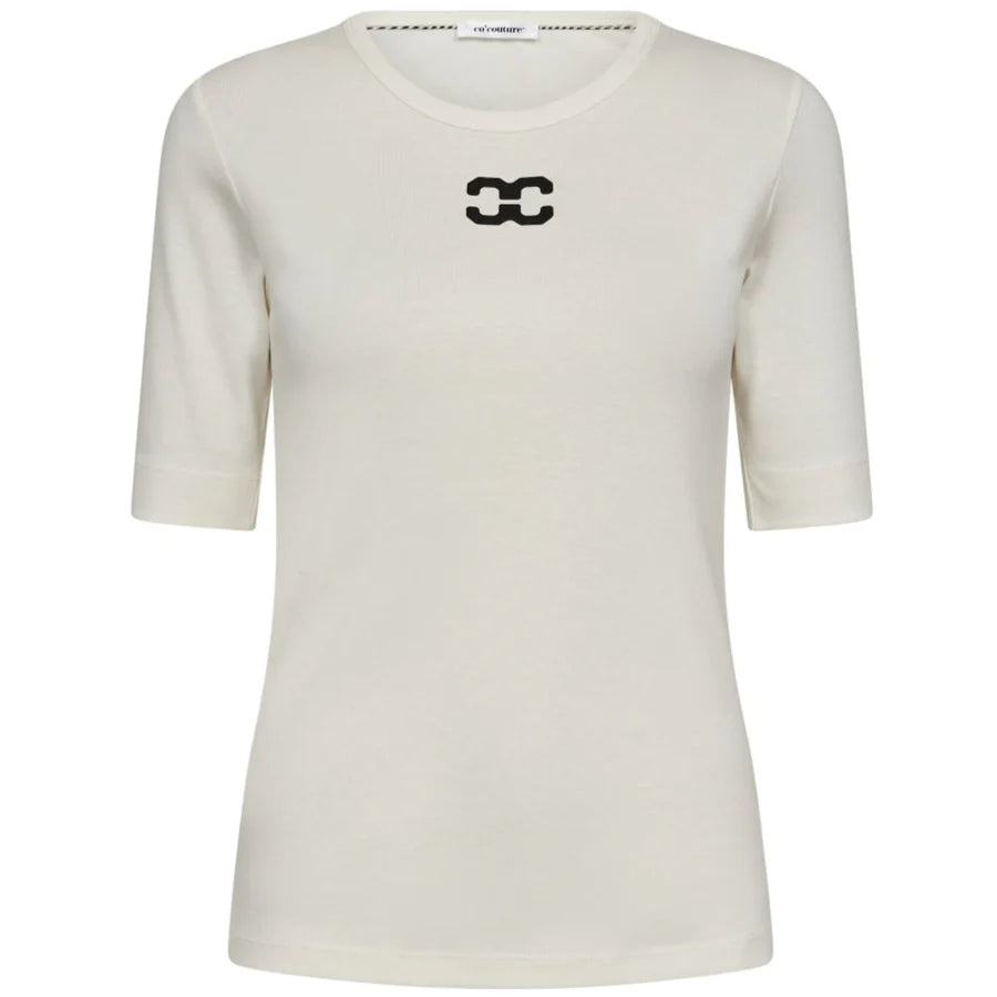 Fin t-shirt fra Co'Couture i en klassisk afslappet pasform. T-shirten har rund hals, lille ærme og logo tryk fortil.