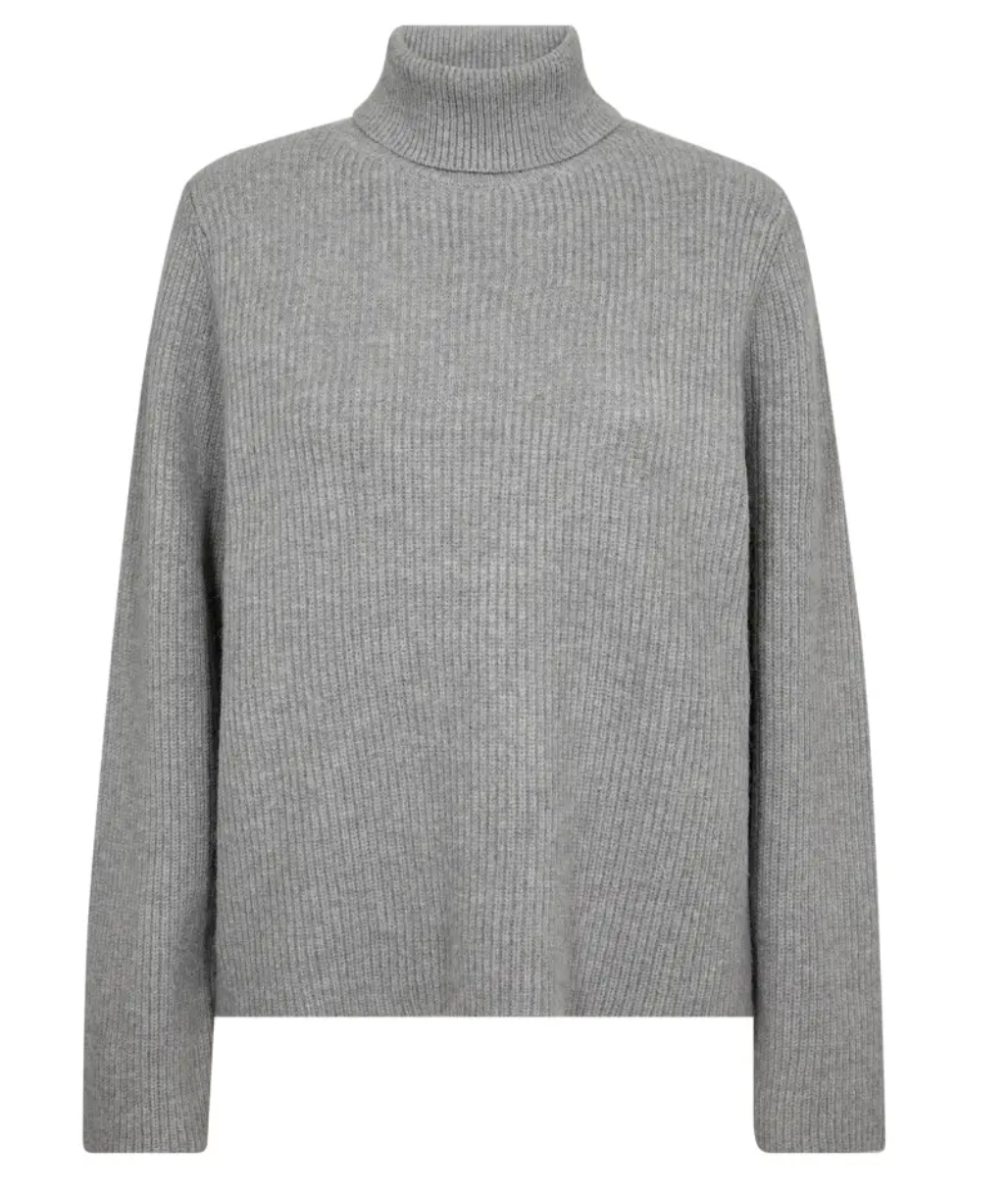 Co'Couture Strikprøve - Row Rib Rollneck Grey