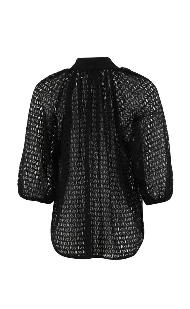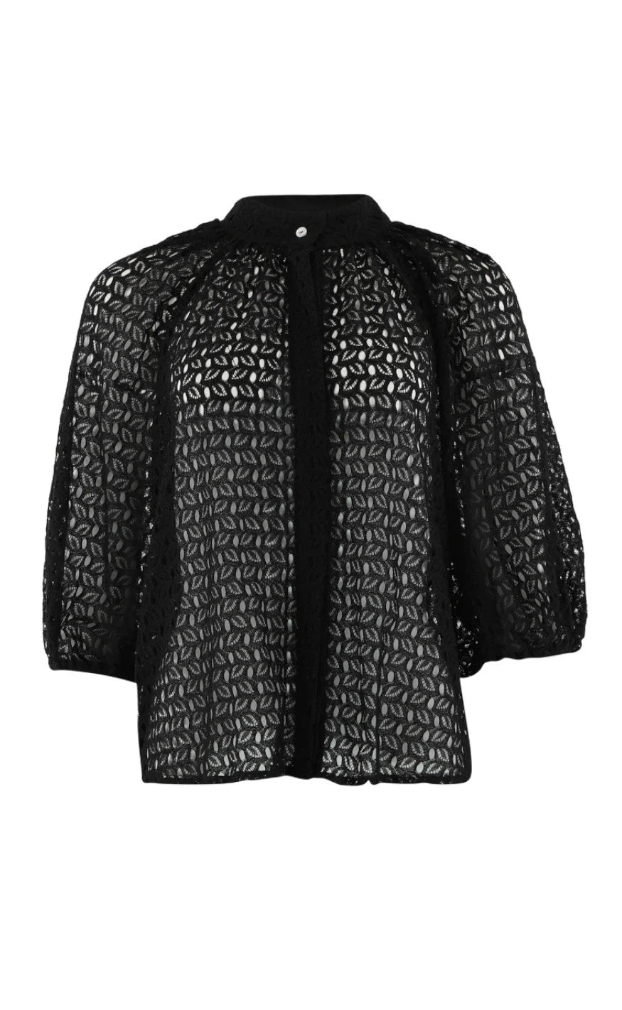 En super fin bluse fra Continue, som er fyldt med de flotteste blonder! Denne bluse har 3/4 pufærmer, skjulte knapper, og så er den en anelse gennemsigtig, så vi anbefaler at du bruger den med en top under.