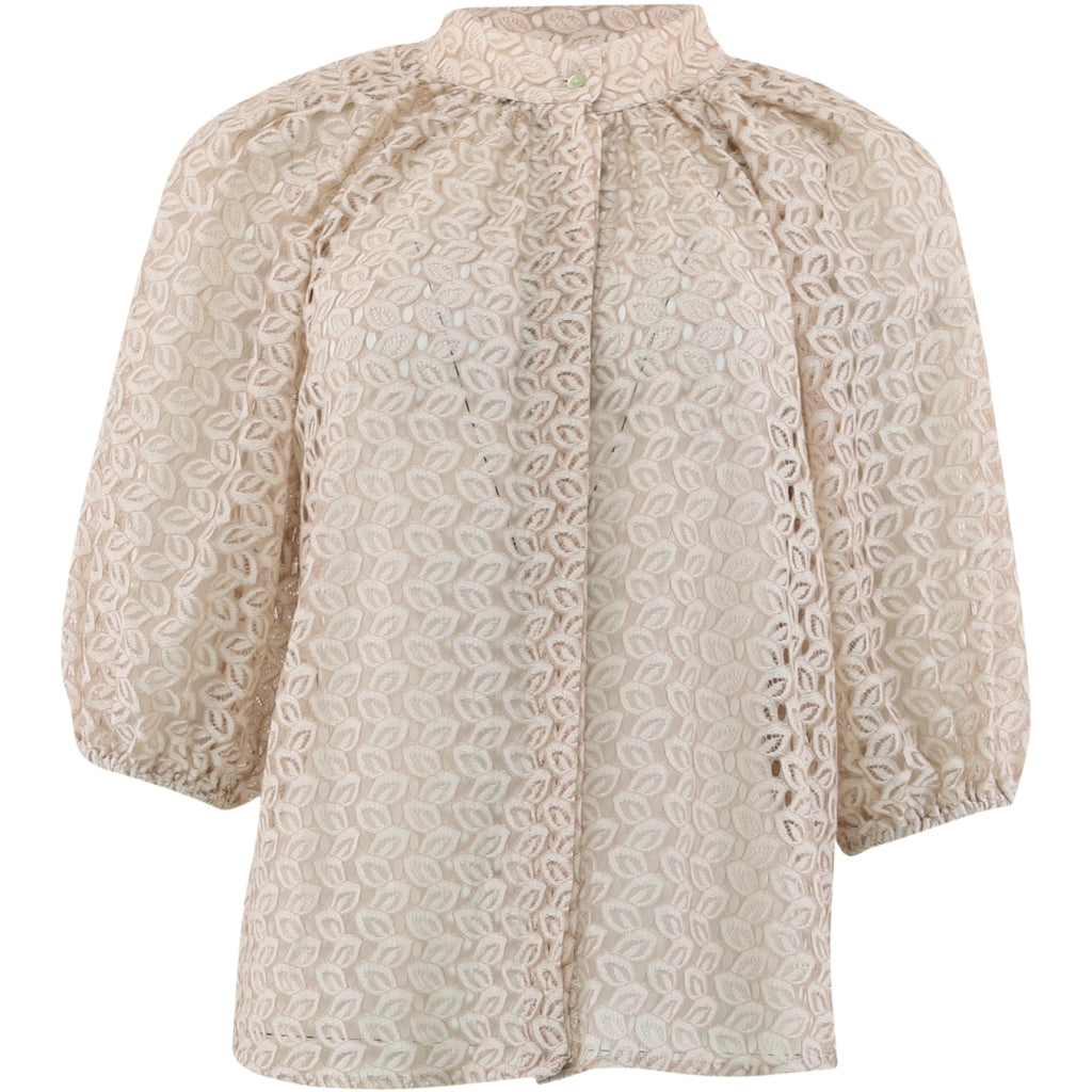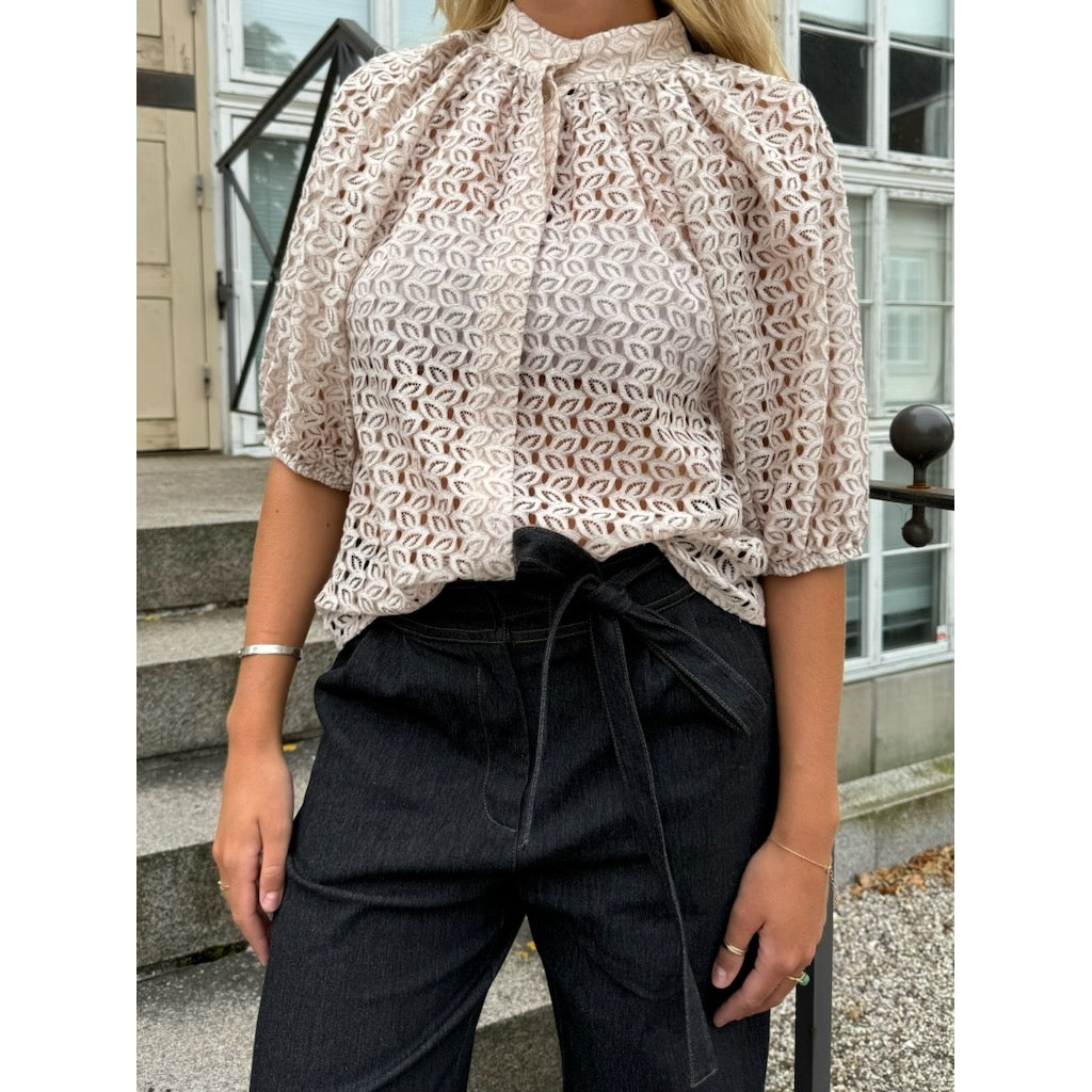En super fin bluse fra Continue, som er fyldt med de flotteste blonder! Denne bluse har 3/4 pufærmer, skjulte knapper, og så er den en anelse gennemsigtig, så vi anbefaler at du bruger den med en top under.