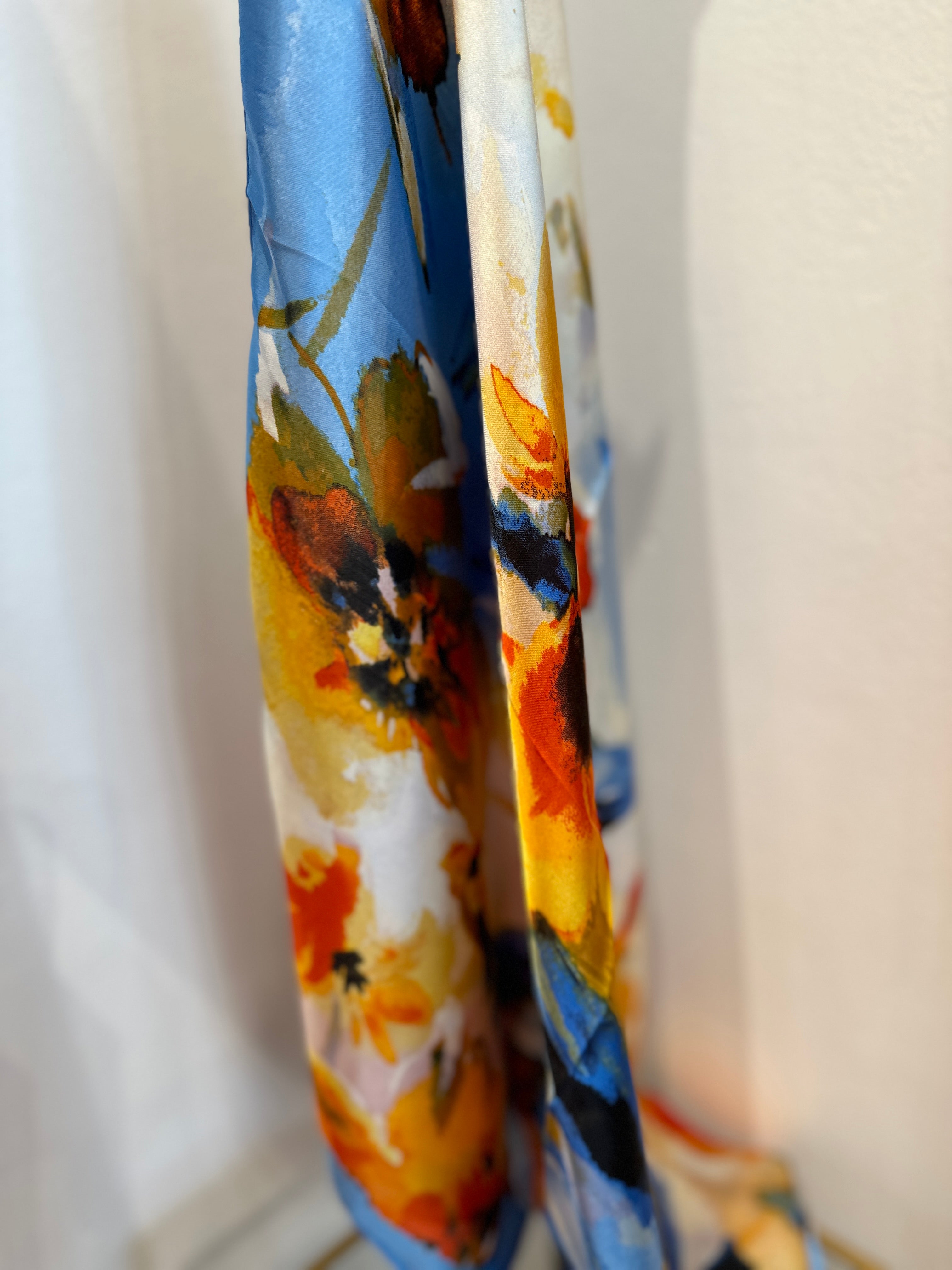 Smukt tørklæde fra bæltekompagniet i flotte blå nuancer.