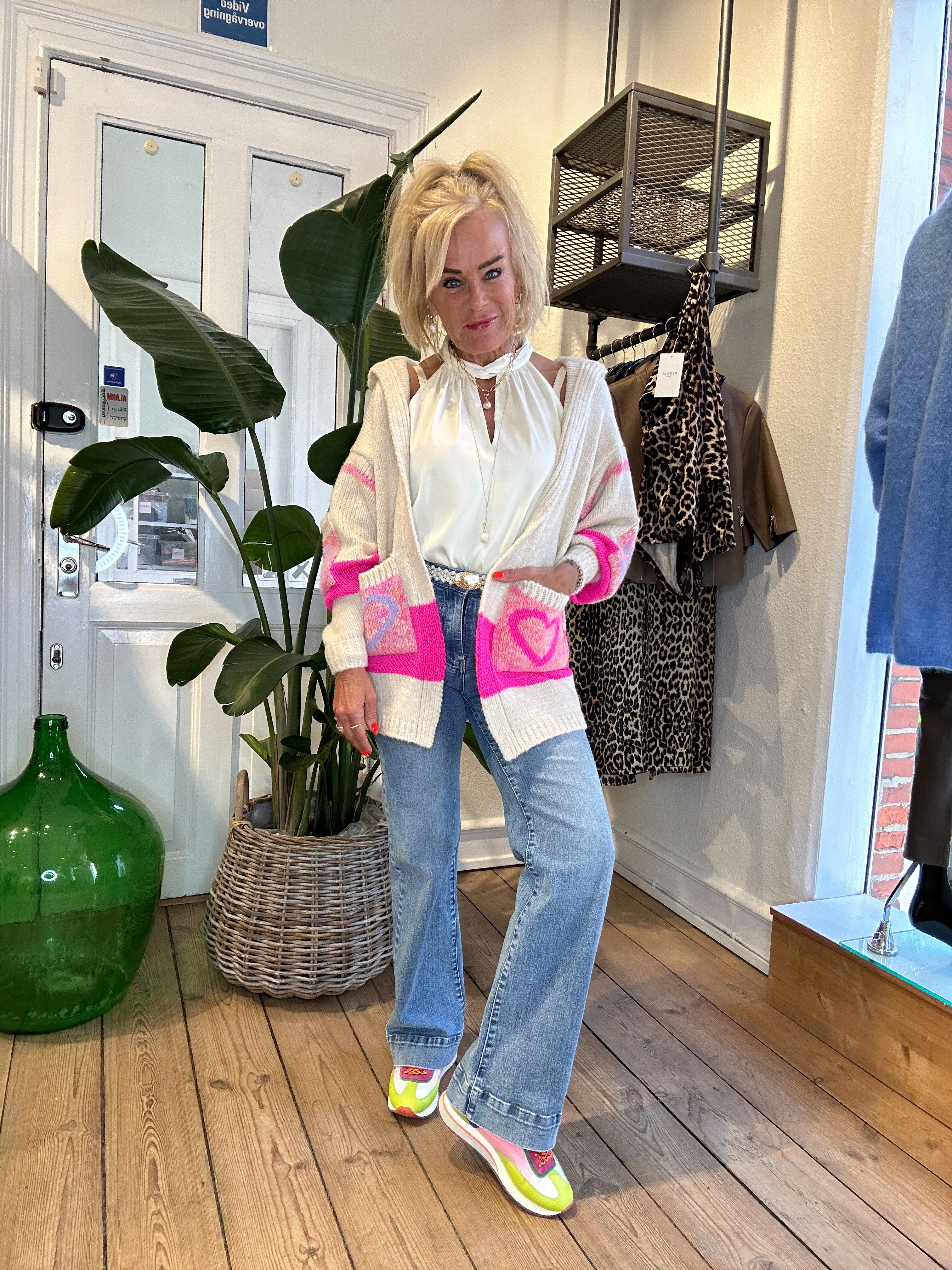 Cardigan med et unikt look med påsyede lommer på ærmerne og foran. Takket være det smarte kvalitetsgarn er det meget varmt og blødt at røre ved. Perfekt til efterårets aftener og morgener.
