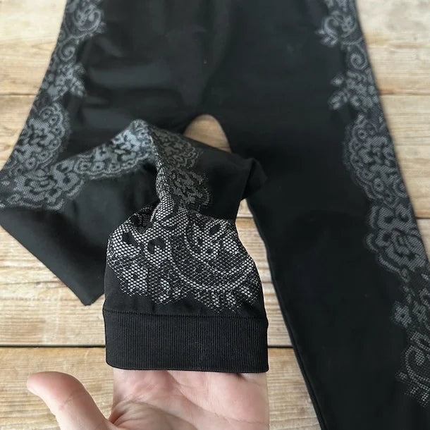 Cool leggings fra Tim & Simonsen i microfiber. Disse leggings har blondemønster på ydersiden af benet.