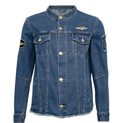 Denne super fede jakke i "vasket" denim er en sikker vinder i garderoben. De påsyet mærker giver jakken masser af kant, sammen med den klassiske skjorte krave.