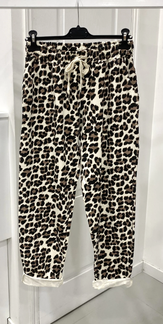 Skønne "Jogger" fra Emsig Exclusive i en blød bomuldskvalitet. Bukserne har en løs pasform og passer str. 36-42.