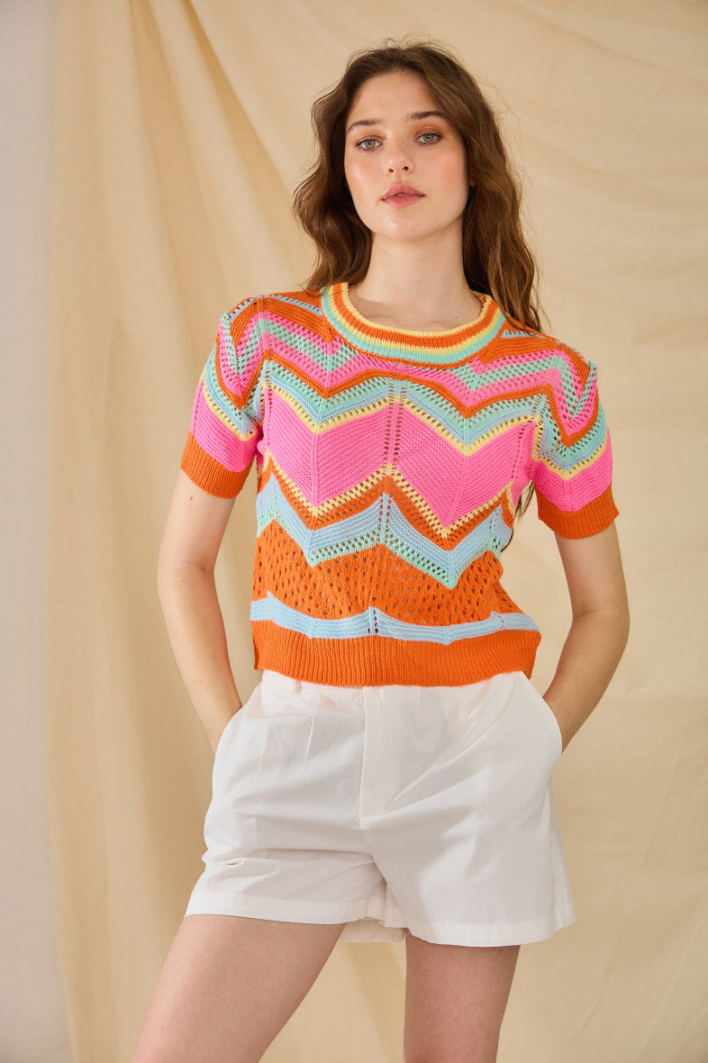 Emsig Exclusive - Crochet Sweater Orange/Multi