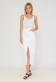 Cool 5 lommet denim skirt i en klassisk hvid farve. Nederdelen har masser af stretch og slids fortil.