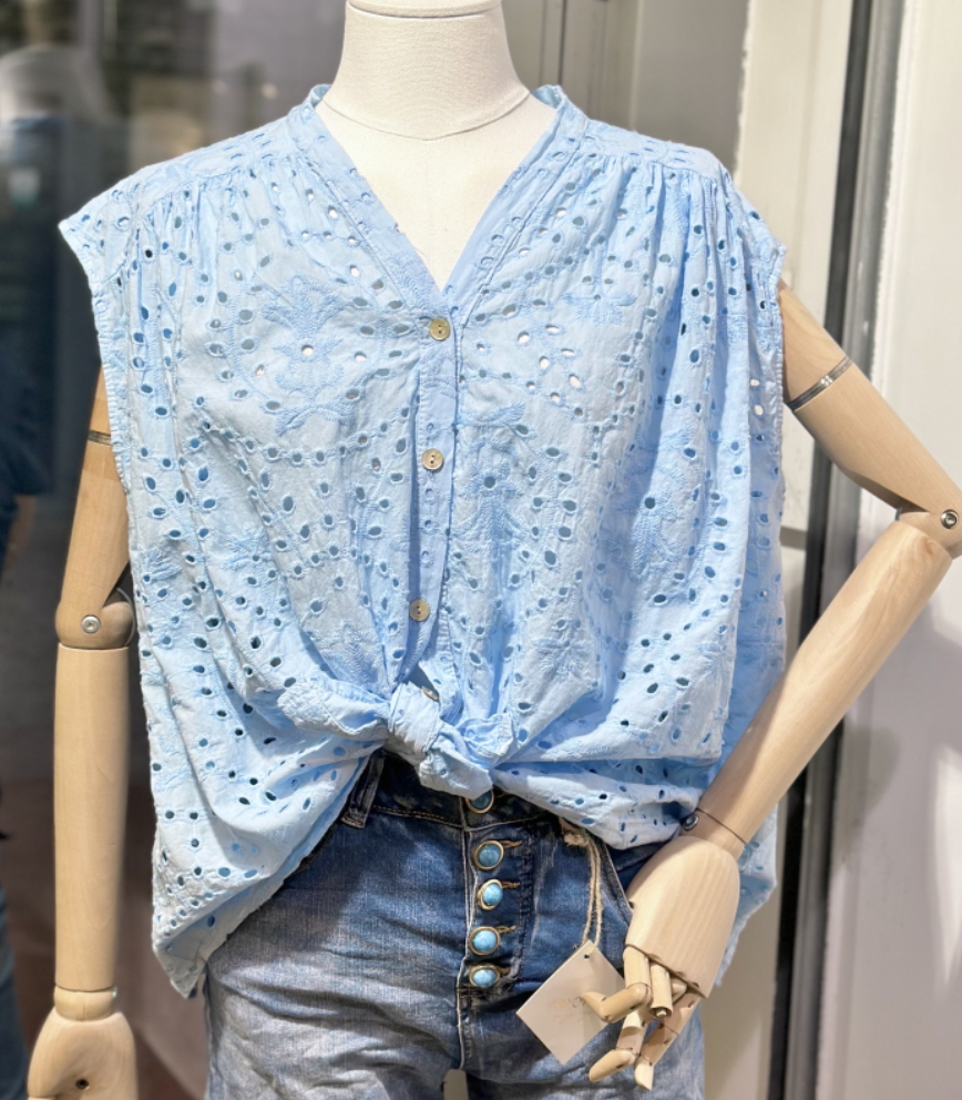 Emsig Exclusive - Emma Broderianglaise Blouse Light Blue