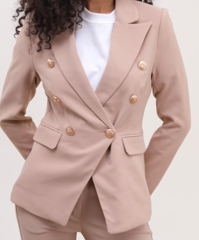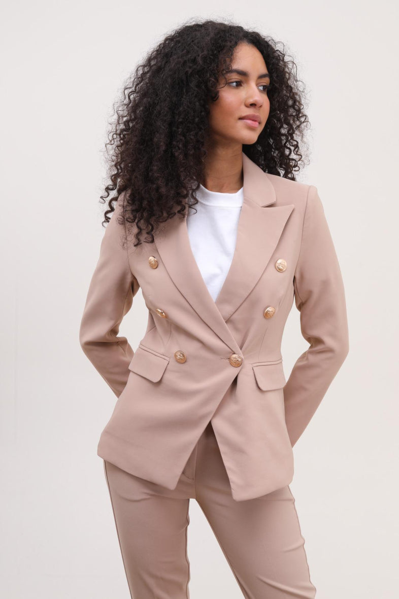 Skøn blazer fra Emsig Exclusive i en lækker kvalitet. Blazeren er let figursyet og lukkes fortil med guld-knap. En rigtig "Emsig" blazer med fede detaljer.