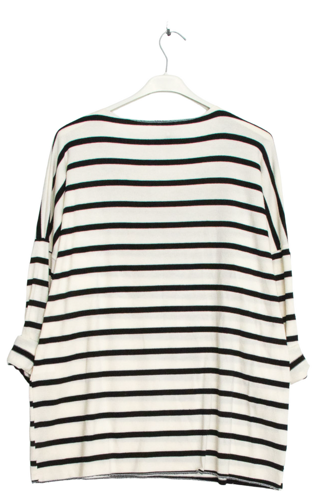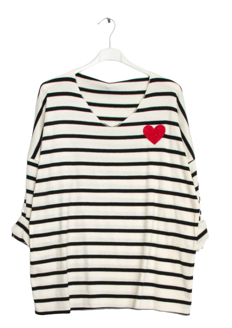 Stribet bluse i blød kvalitet detaljeret med rødt hjerte og rå afslutninger.