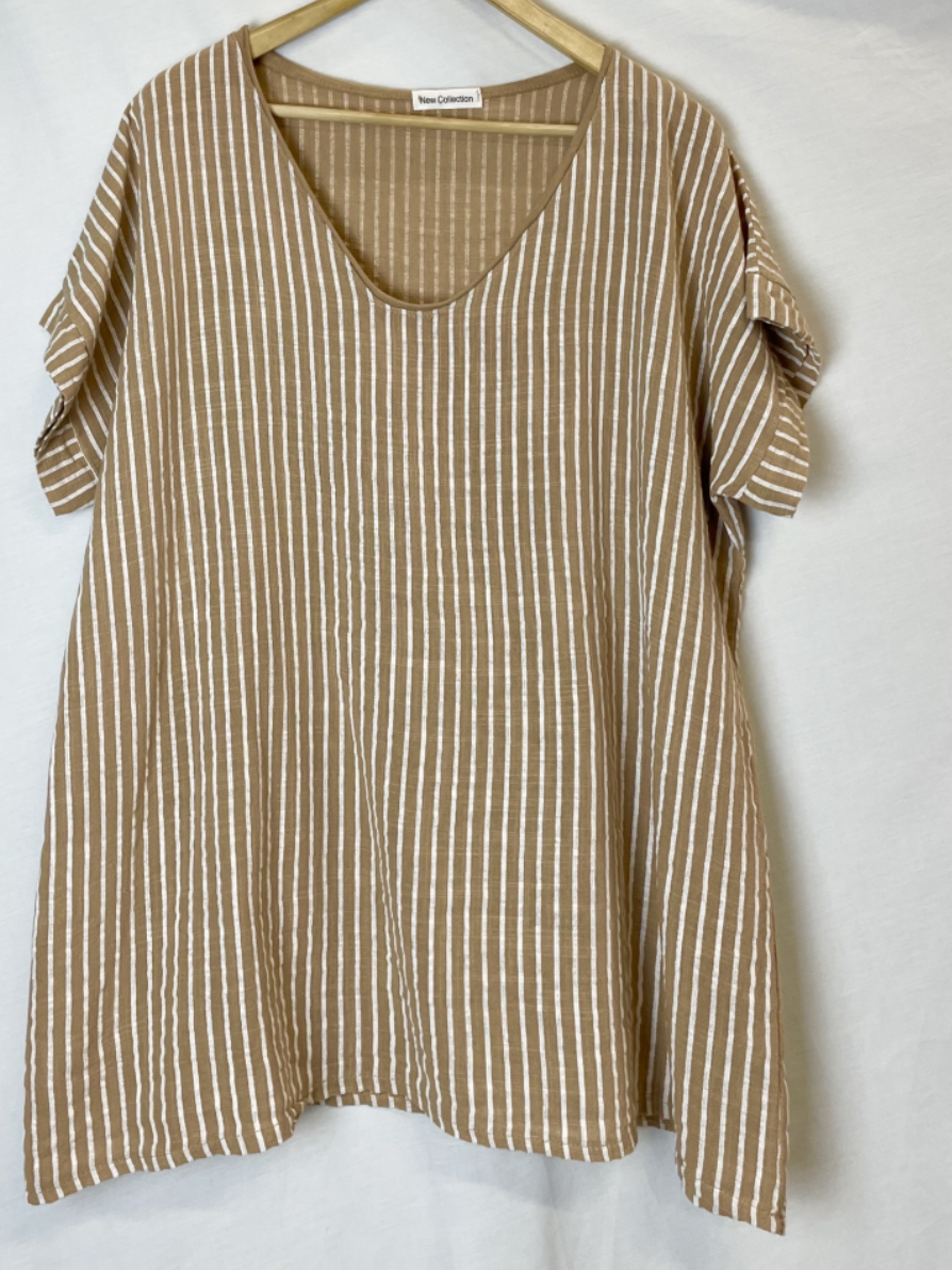 Lækkert sæt fra Emsig Exclusive i skønne striber. Sættet er med korte ærmer og vidde i benene og i ren bomuld.