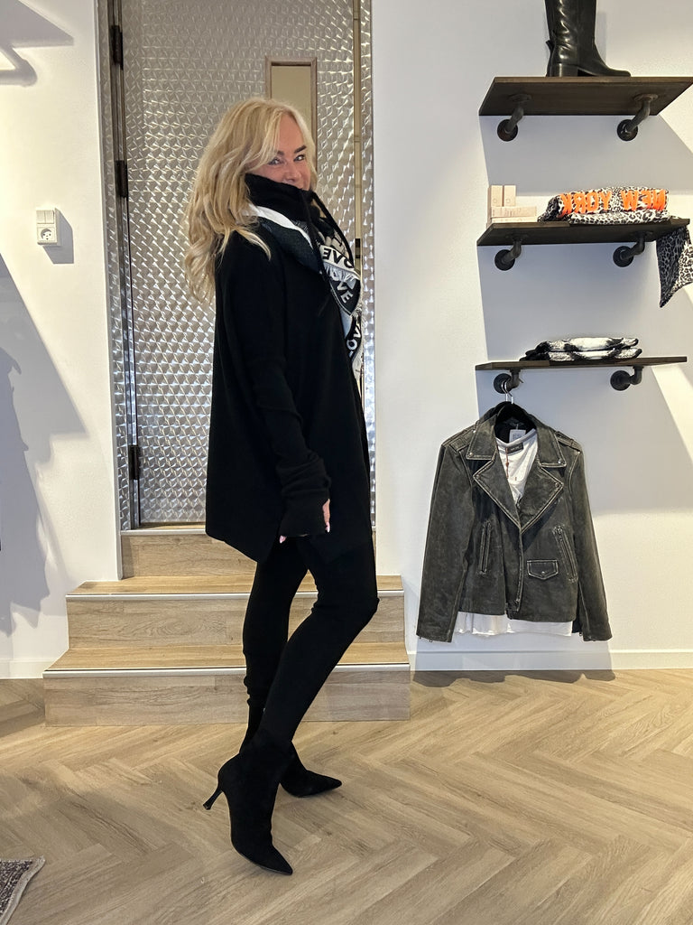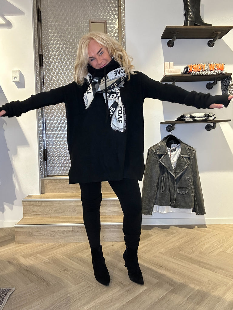 Skøn casual sæt fra Emsig Exclusive i en rib-kvalitet. Bukserne er tætsiddende med masser af stretch, blød elastik i taljen og snøre. Blusen er oversize med slids i siderne.