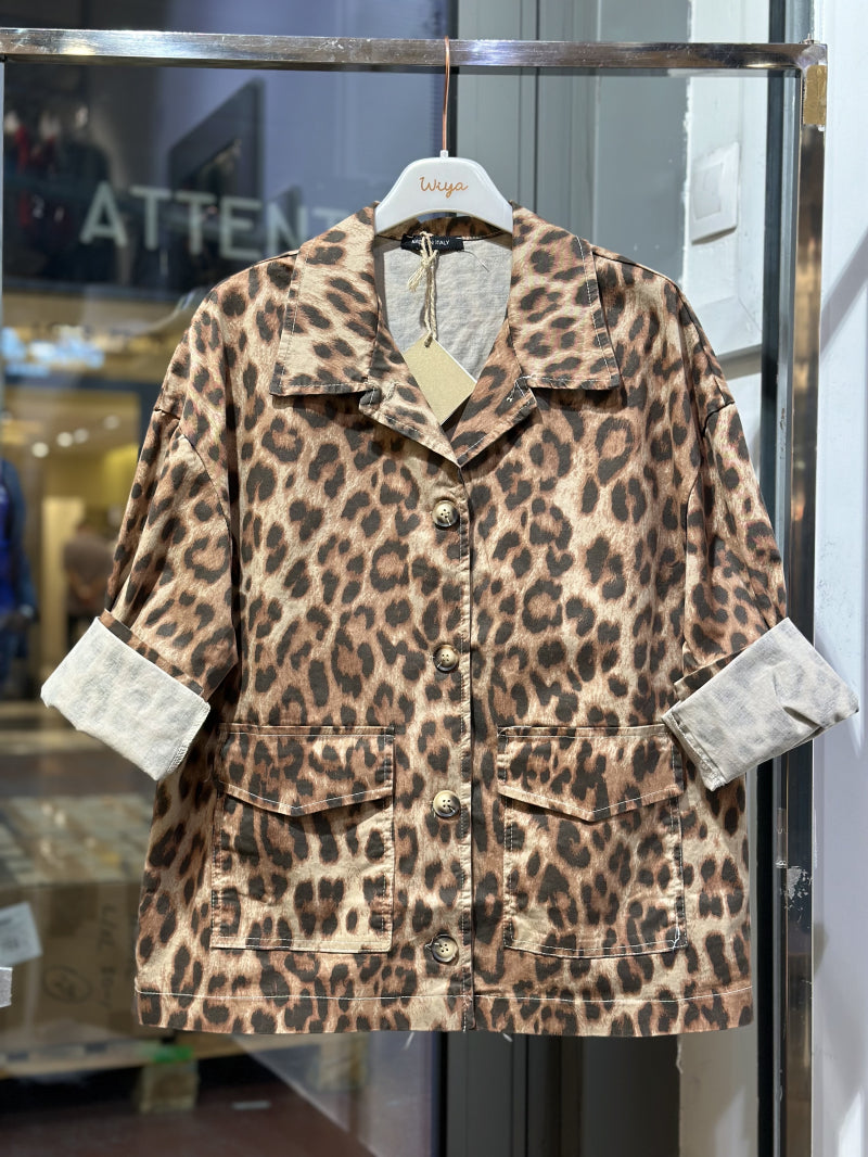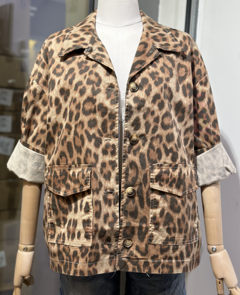 Fed kanvasjakke fra Emsig Exclusive i leopard. Jakken har lommer fortil og er i en skøn bomuldskvalitet.