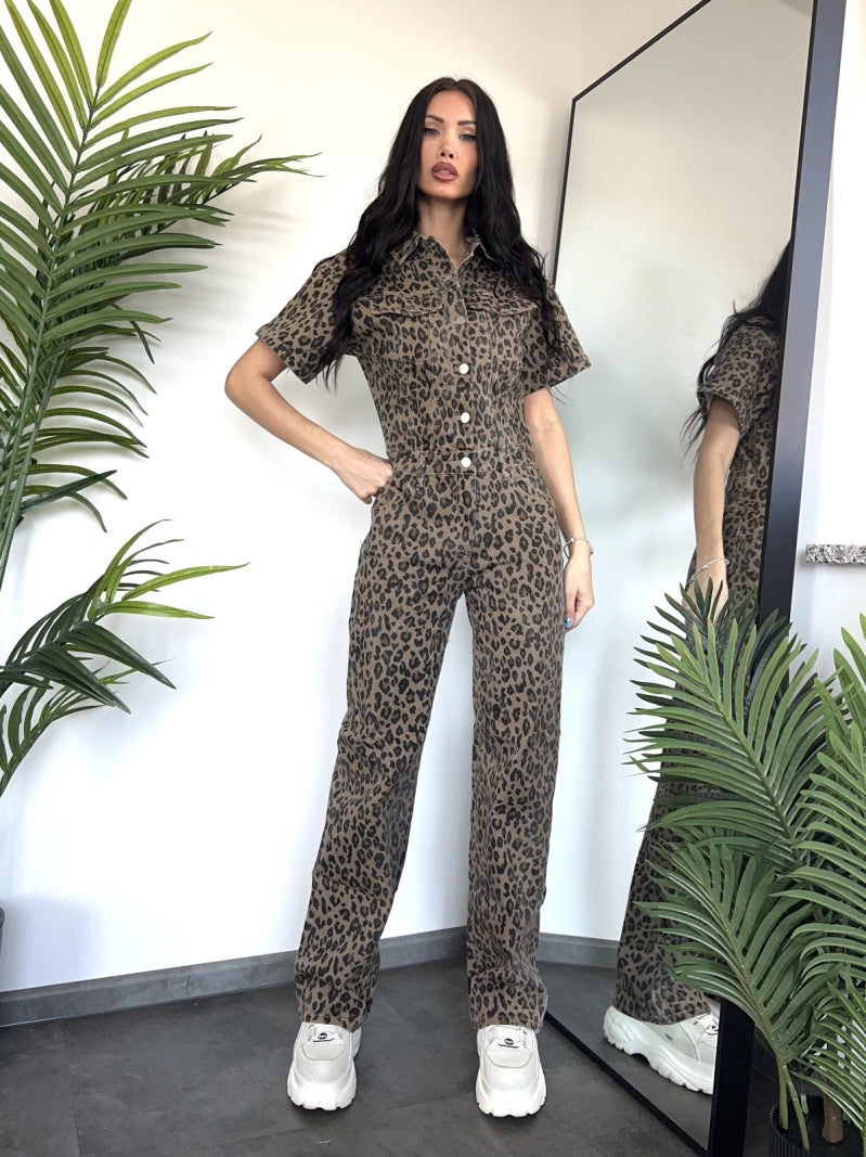 Emsig Exclusive - Leopard Denim Jumpsuit Soft