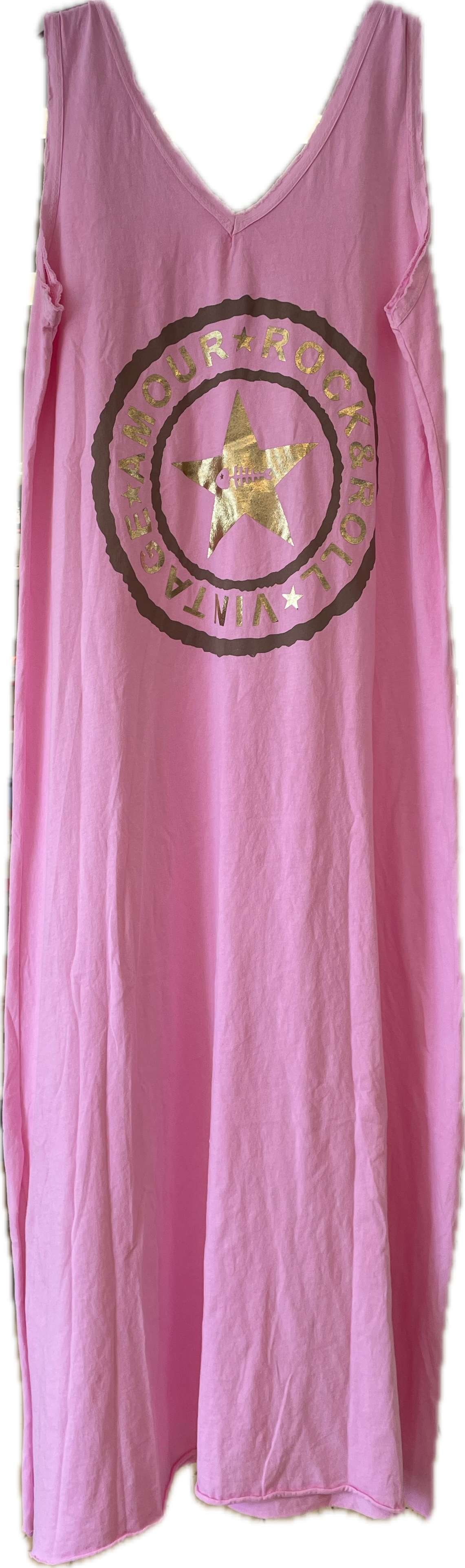 Fin kjole med v-udskæring i ren bomuld. Kjolen har rå-detaljer og slids i siderne.