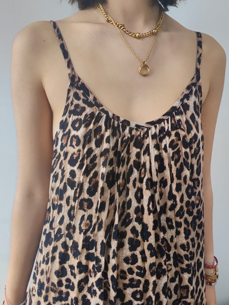 Skøn sommerkjole til de varme dage i et flot leopardprint. Kjolen er i en skøn kvalitet og har justerbar stropper.