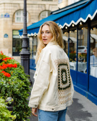Skøn denim jakke fra Emsig Exclusive i en flot off white farve. Jakken har fine crochet detaljer på lommer og bagsiden.