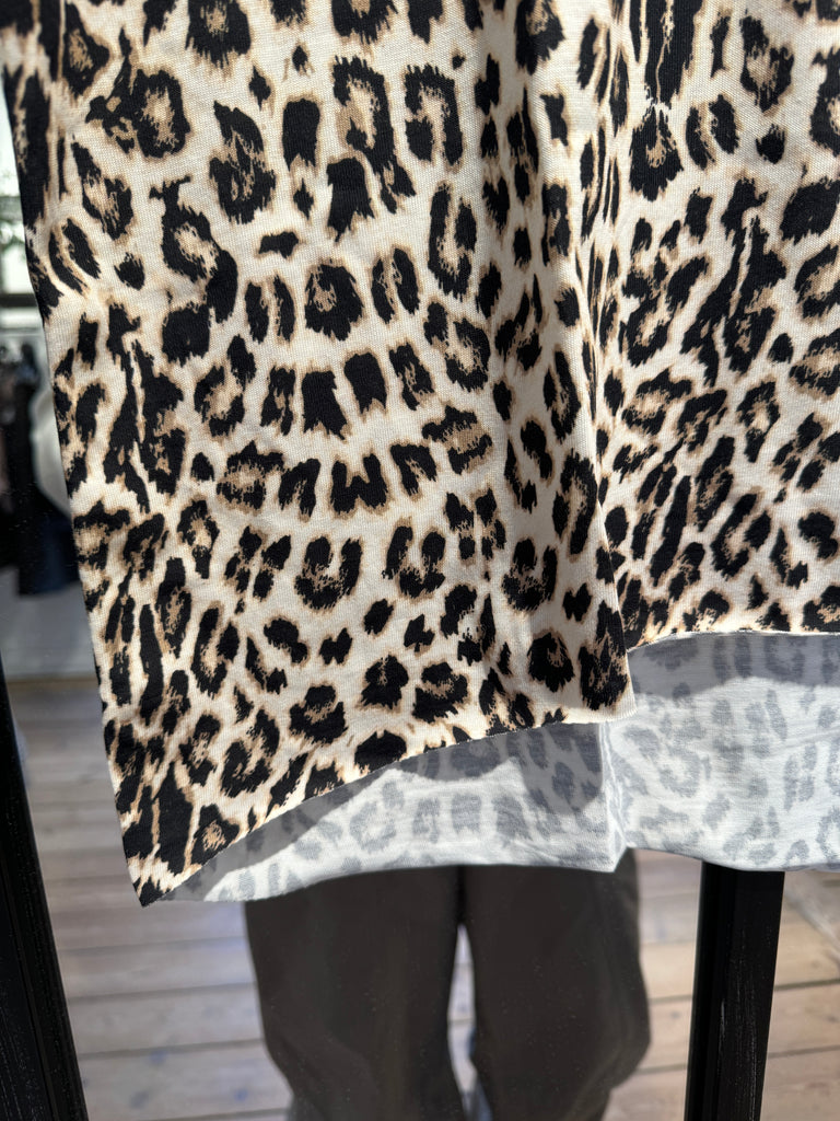 T-shirt med leo printet mønster i blød kvalitet og afsluttet med rå klippet kant.