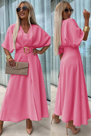 Smuk lang kjole fra Emsig Exclusive. Kjolen har en indsnævring under brystet og skære der hvor vi er smallest, som giver en smuk pasform. Kjolen har bæltestropper og slids fortil.