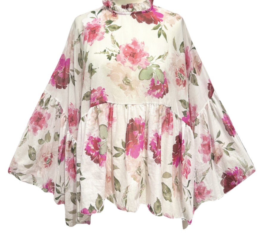 Den fineste bluse fra Emsig Exclusive i en let bomuldskvalitet. Blusen har et losse fit look og et smukt blomstermønster.