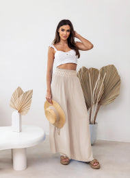 Emsig Exclusive - Sarah Wide Pattern Pants Beige