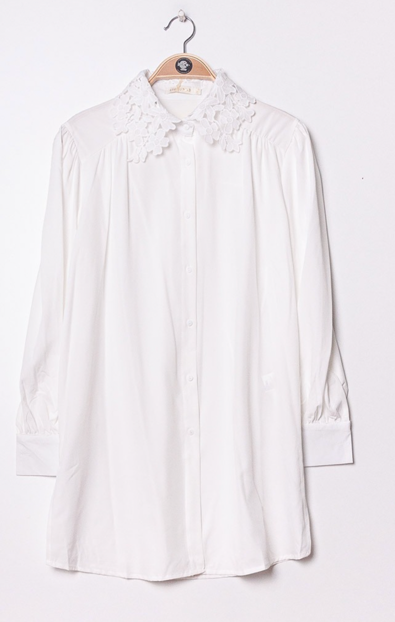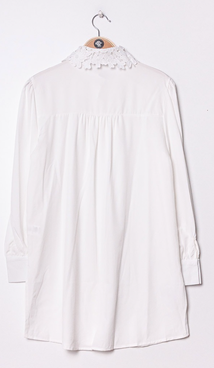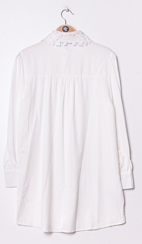 Smukkeste skjorte fyldt med detaljer. Skjorten er i en let kvalitet og har en smuk krave i broderi anglaise.