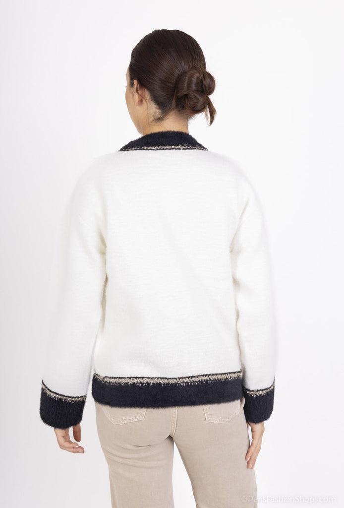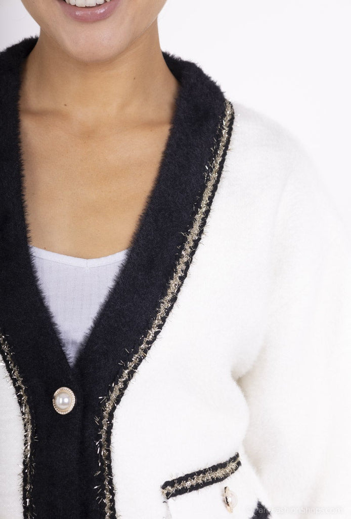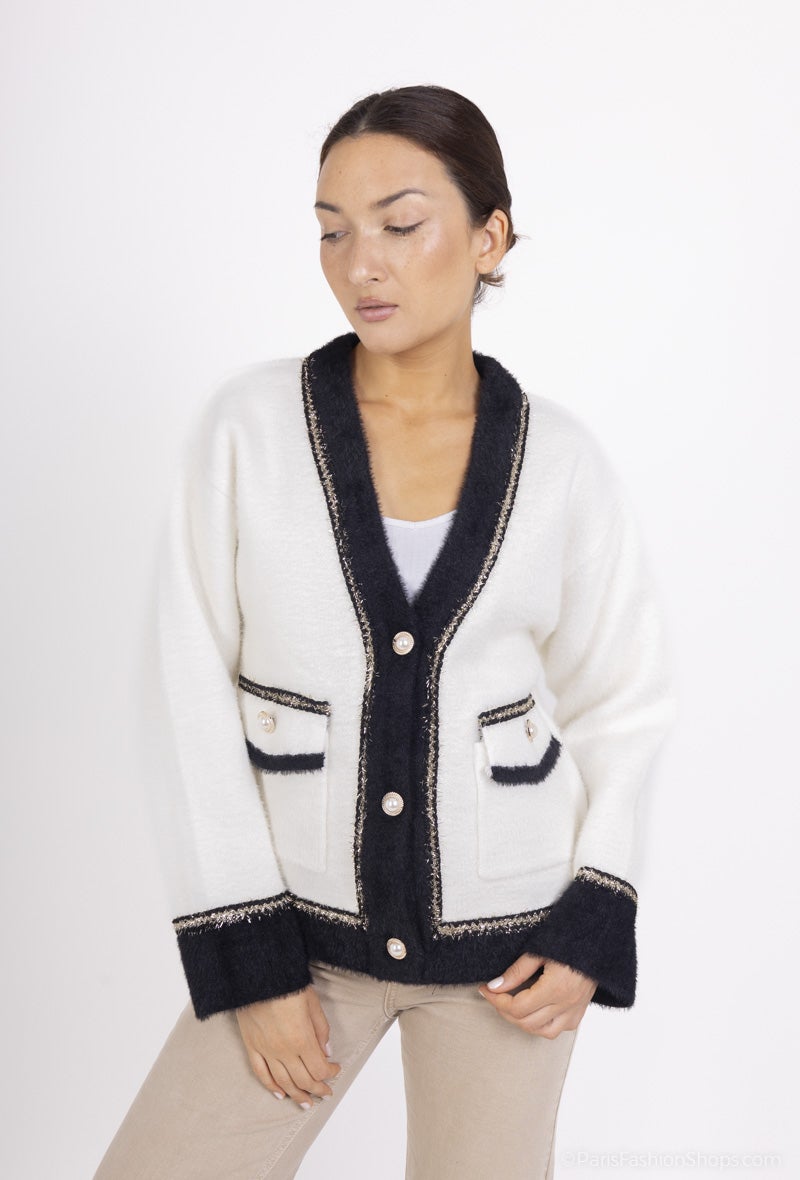 Cool cardigan i en blød kvalitet med fine detaljer fra Emsig Exclusive. Cardiganen har v-udskæring og lukkes med chunky knapper, med lommer fortil og lange ærmer.