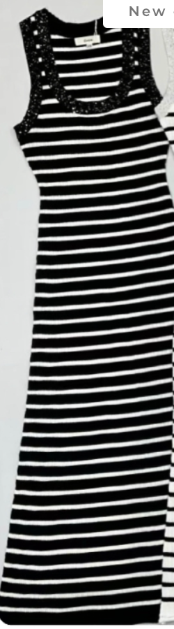 Fineste top i hvid med sorte striber og lurex detaljer ved stropperne. Toppen har massere af stræk!