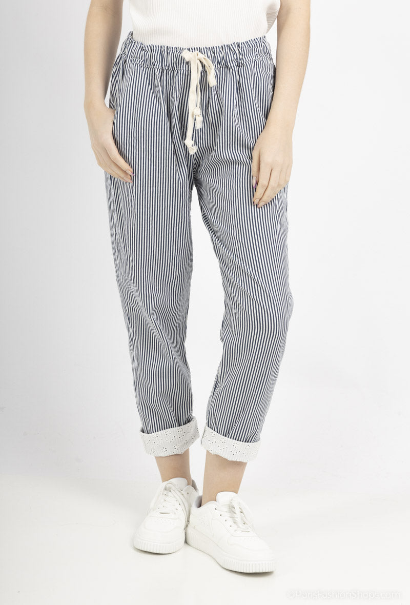 Behagelig buks med striber og blonde detaljer i bunden af buksebenet.