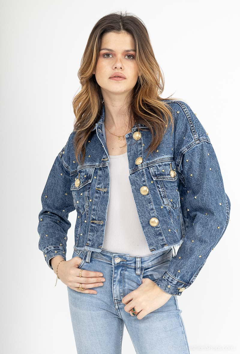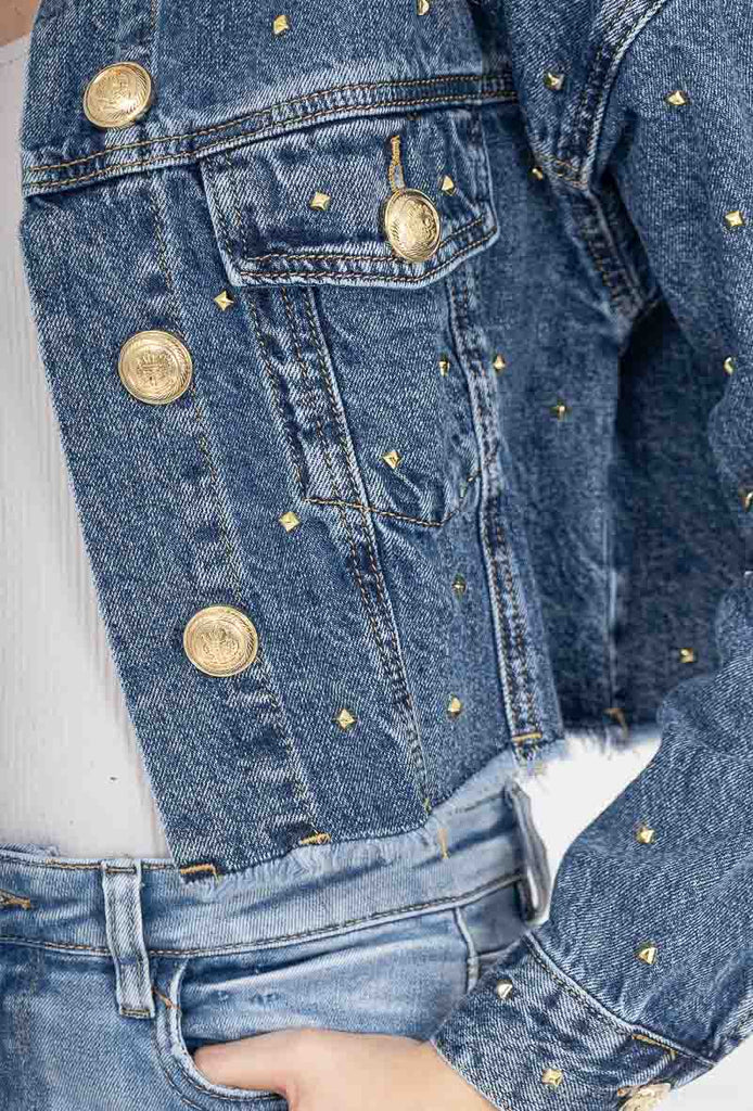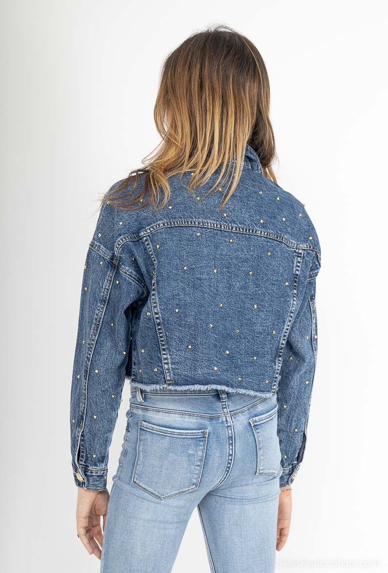 Emsig Exclusive - Stud Denim Jacket Blue - stor i størrelsen