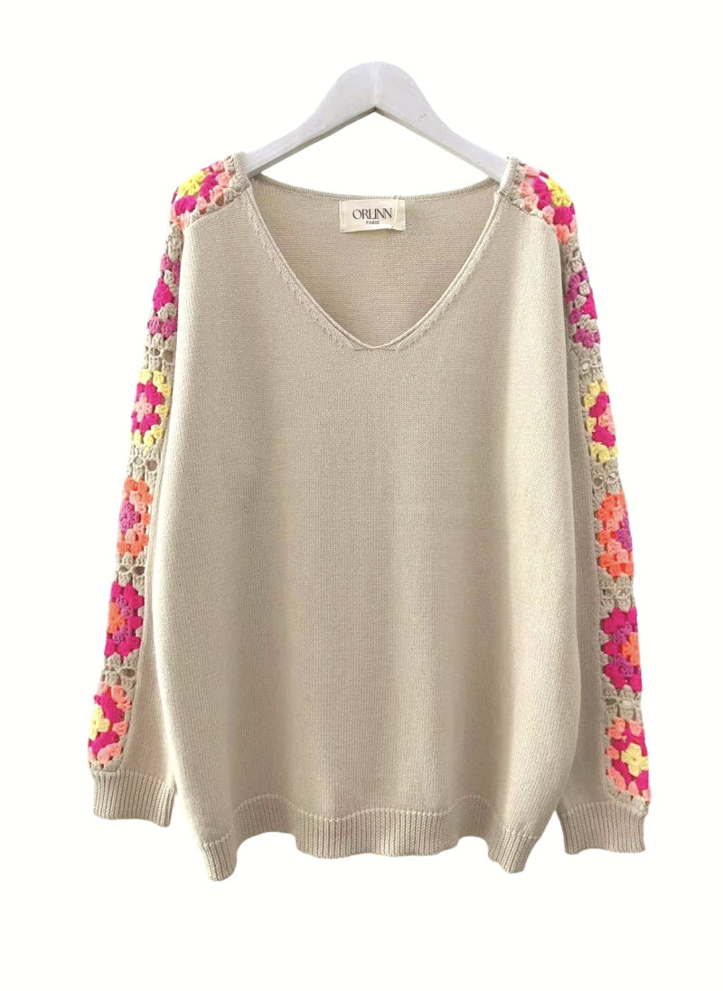 Emsig Exclusive - V-neck Sweater w. Crochet Sleeves