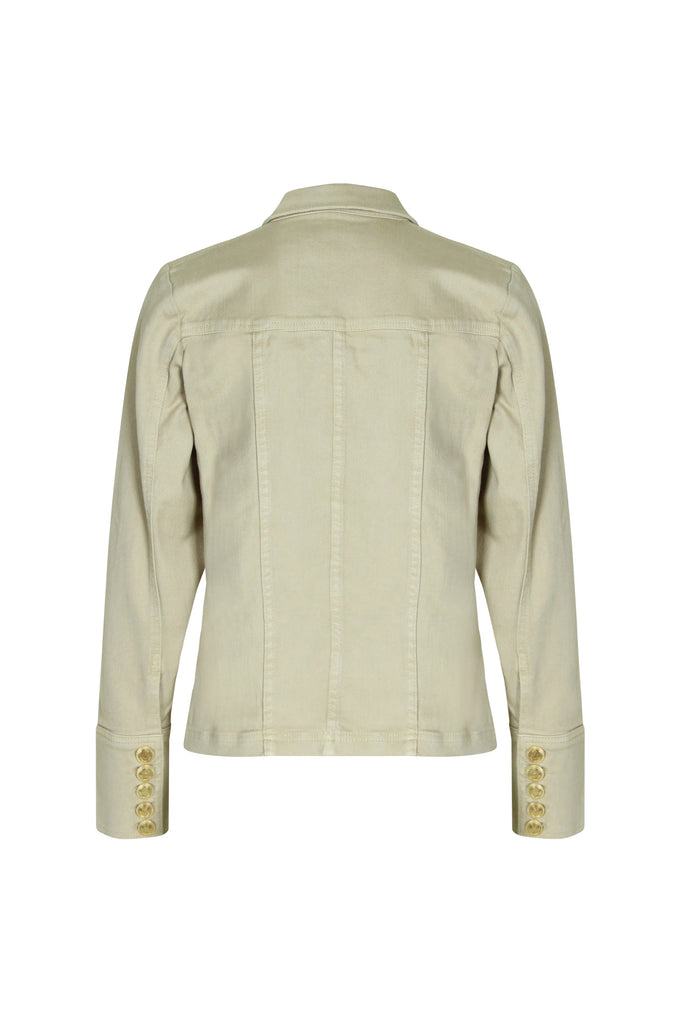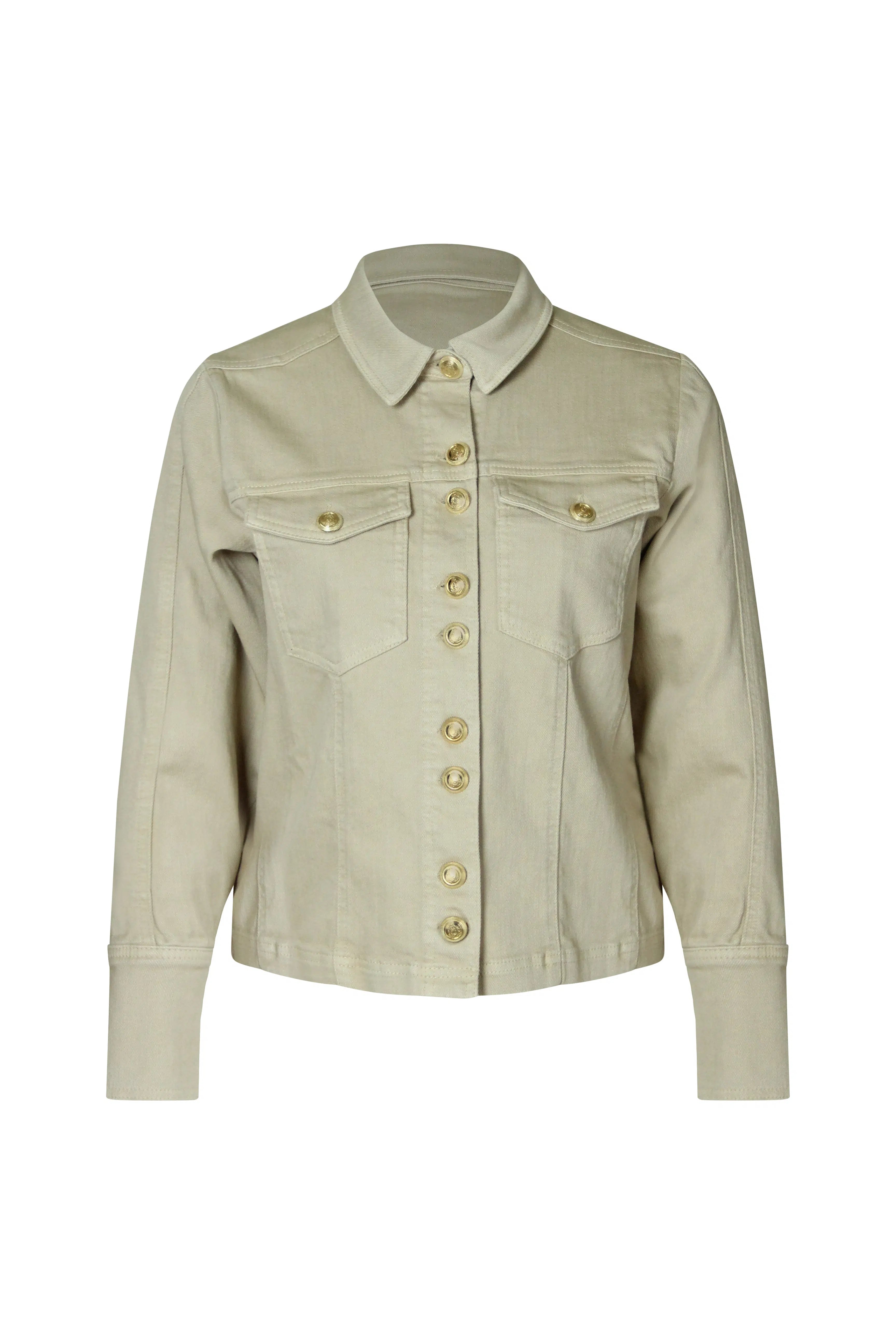 Mega Cool denim jakke fra Fine i en skøn sandfarve, som matcher Robin jeans. Jakken er gennemknappet med de fedeste guld knapper. Jakken er med manchetter og fede gulddetaljer.
