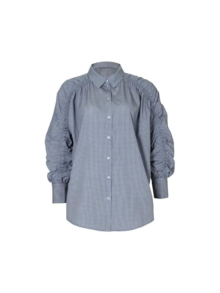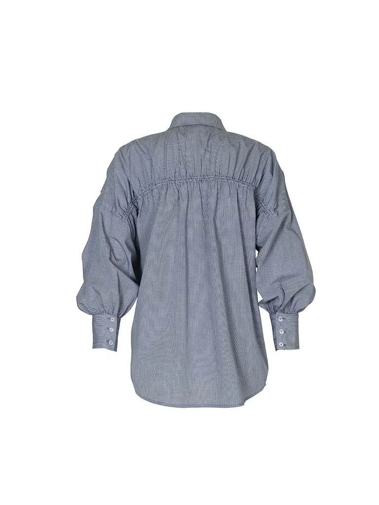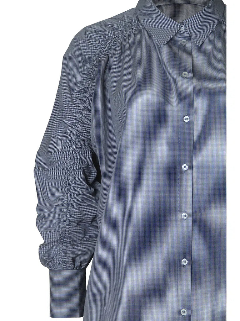 Skøn skjorte i den fine Night Blue kombination fra Fine CpH. Skjorten har fine detaljer på ærmerne og kommer med en klassiske skjortekrave og lukkes med hvide knapper ned langs fronten.