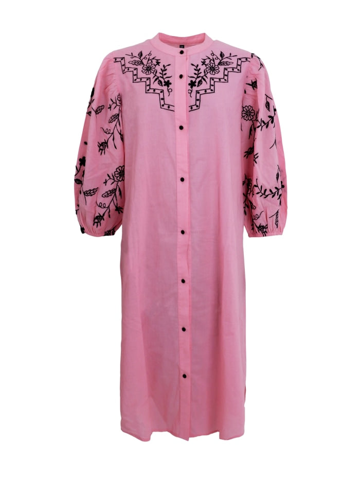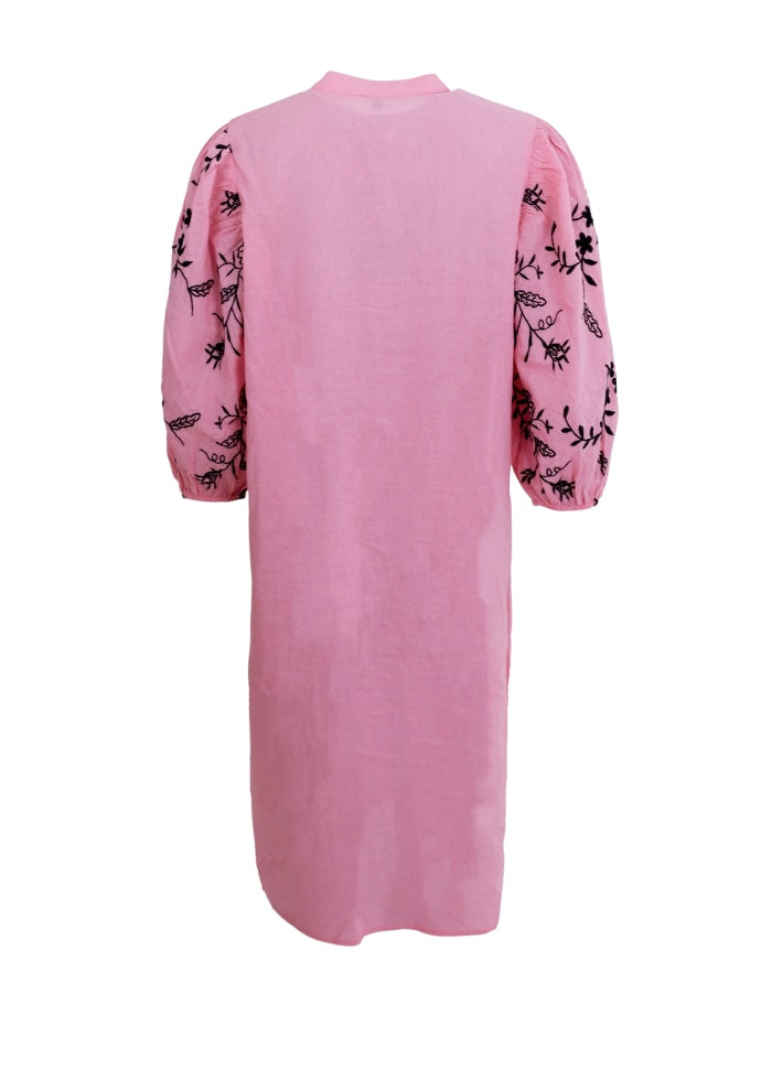 Skøn bomuldskjole fra Black Colour. Kjolen har lette puff ærmer og flotte sorte broderidetaljer.