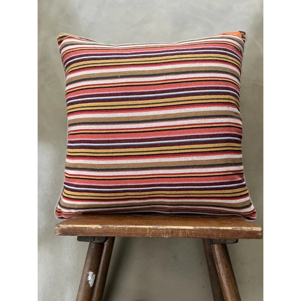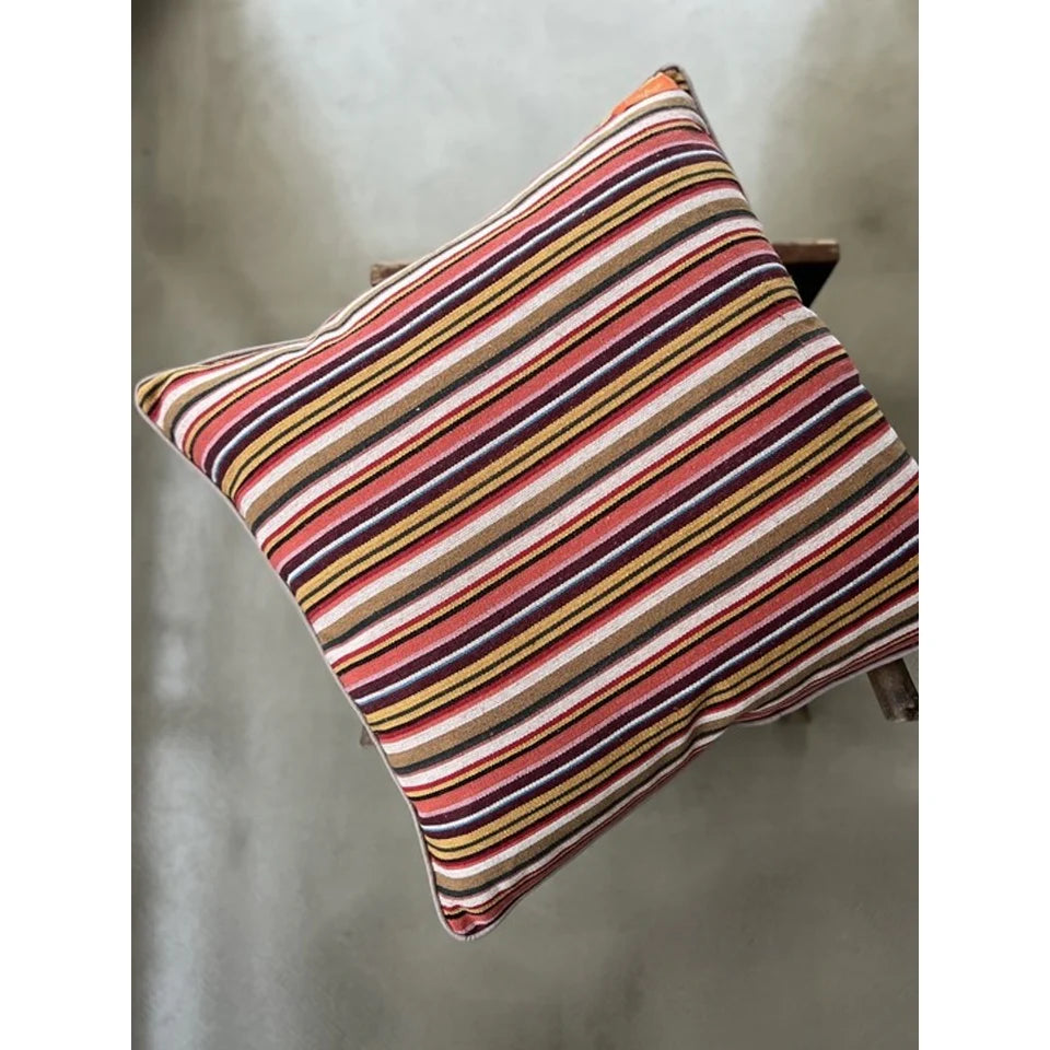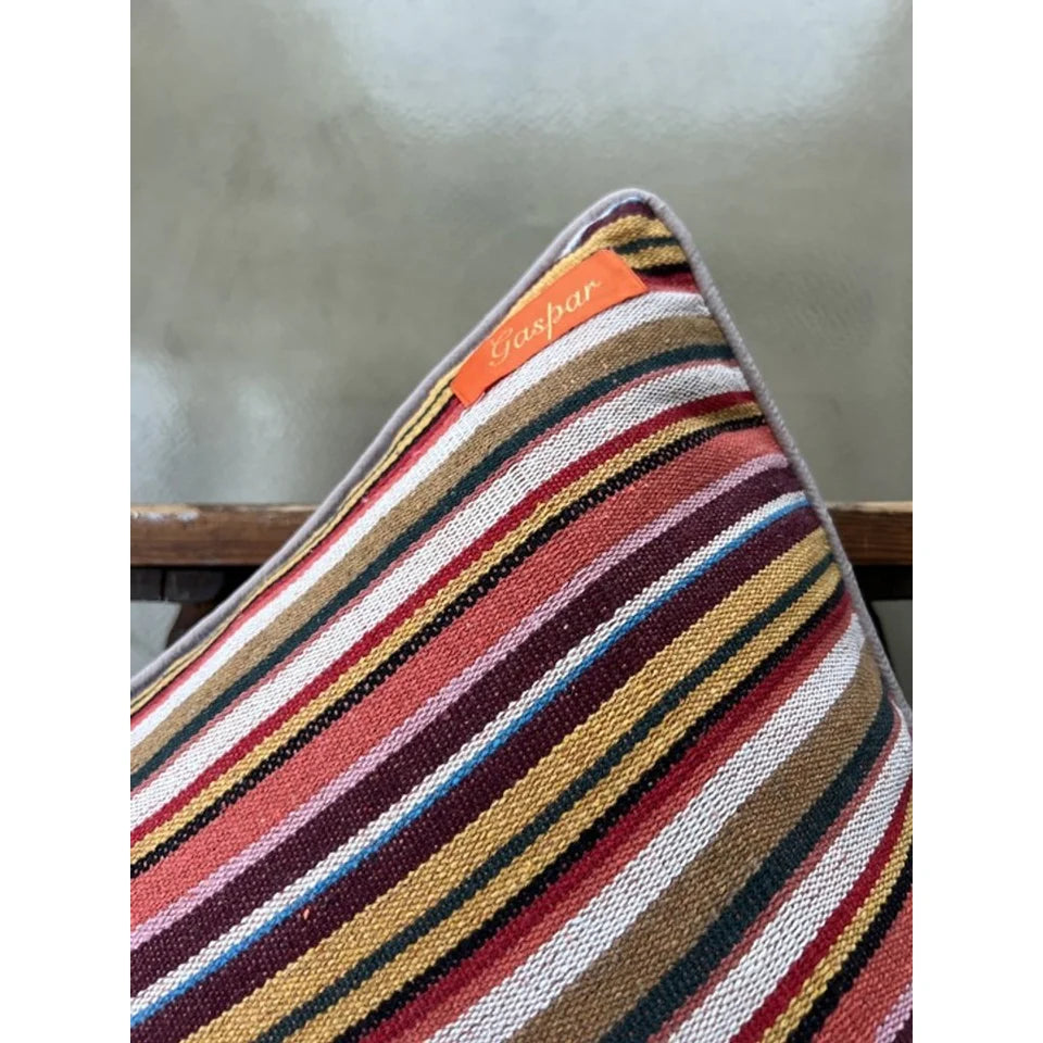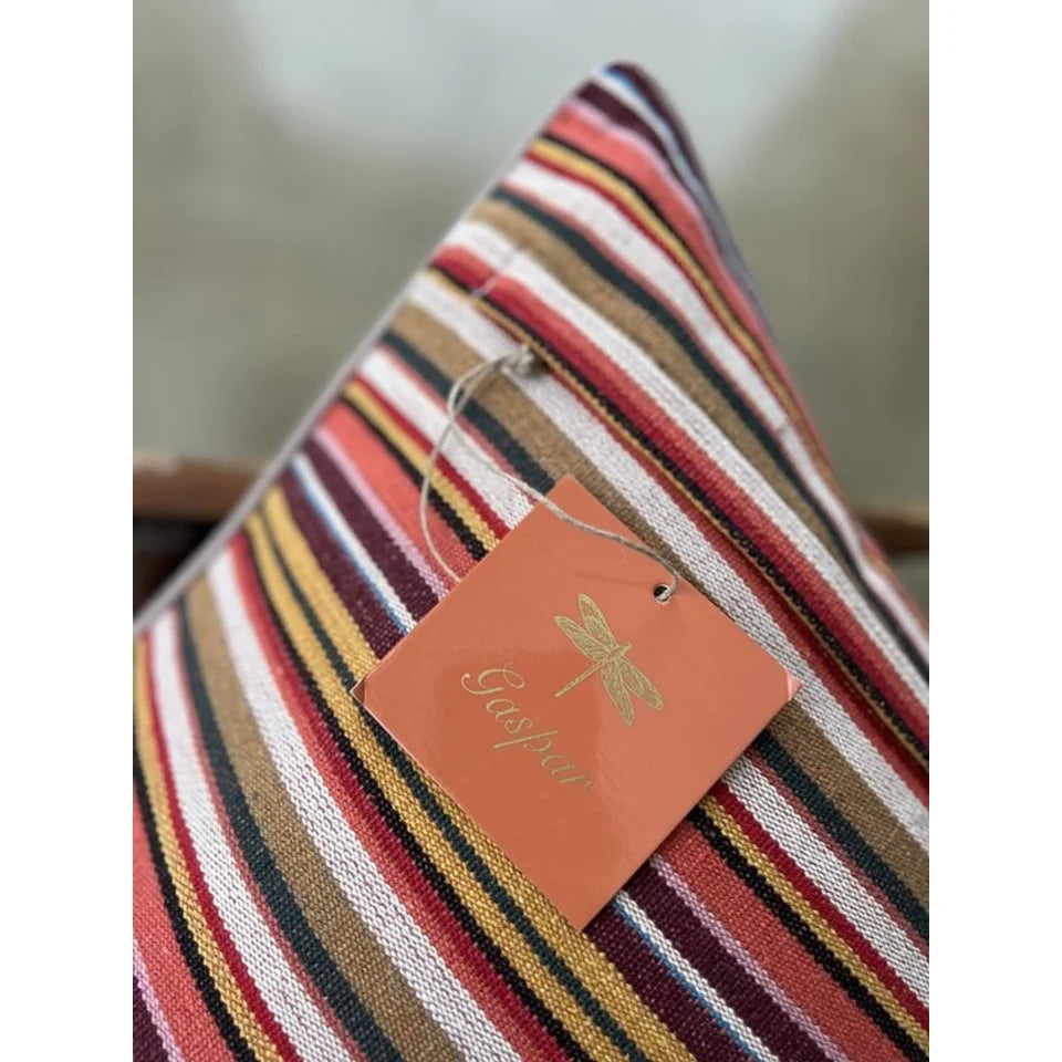 Skønne puder fra Gaspar i bomuldsjacquard i lækker multistrib med lys sand piping.