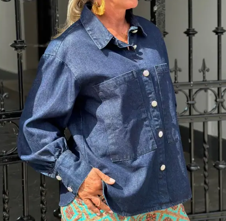Fed denimskjorte fra Gaspar i en oversize pasform. Skjorten har et cool udtryk med de store frontlommer og chunky guldknapper.