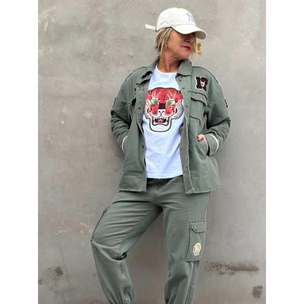 Offwhite bånddetaljer på skuldre samt ærmer.