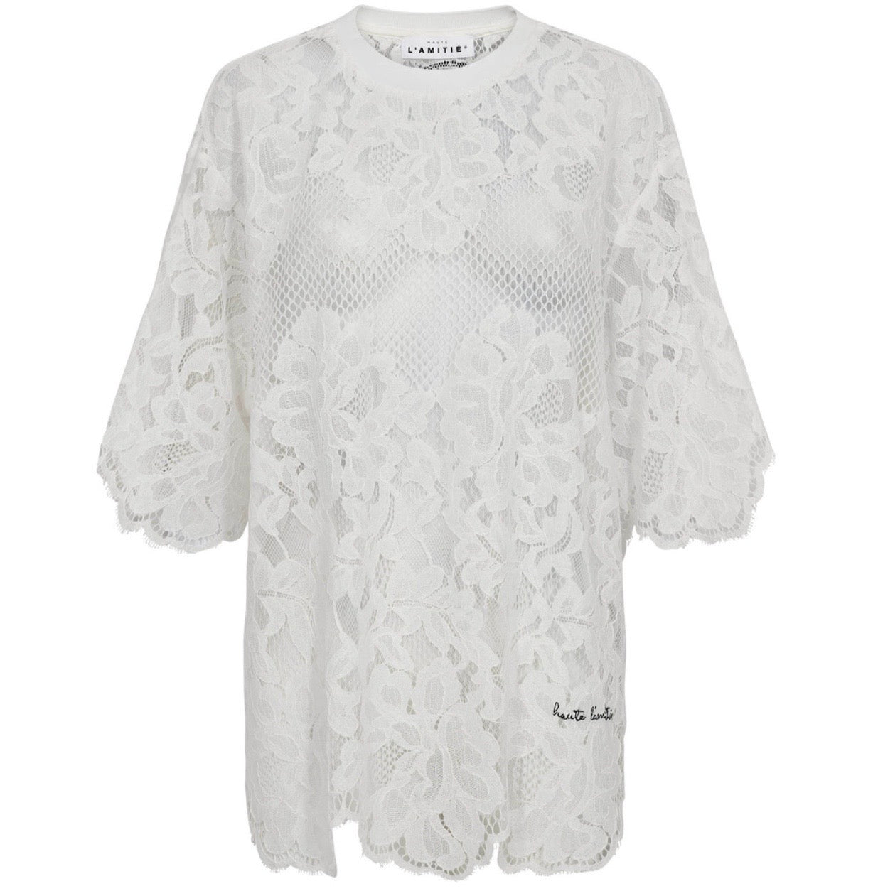 Cool t-shirt i mesh med flotte blonder fra Haute L´amitié. T-shirten har en løs pasform og flotte bølgede afslutninger. Fullend sættet med de matchende bukser.