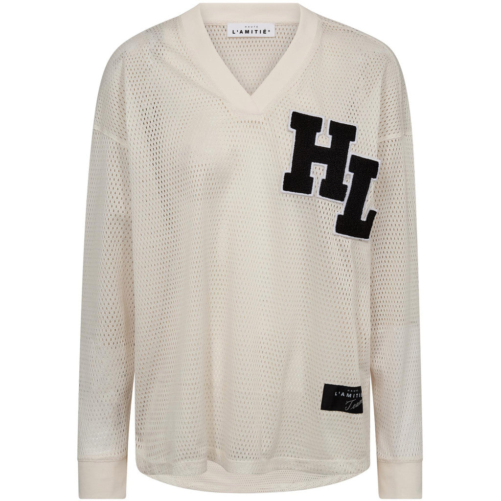 Den sejeste sporty bluse fra Haute Lámitié. Blusen har cool logo detalje foran, v-udskæring og er lavet i let gennemsigtig net materiale.