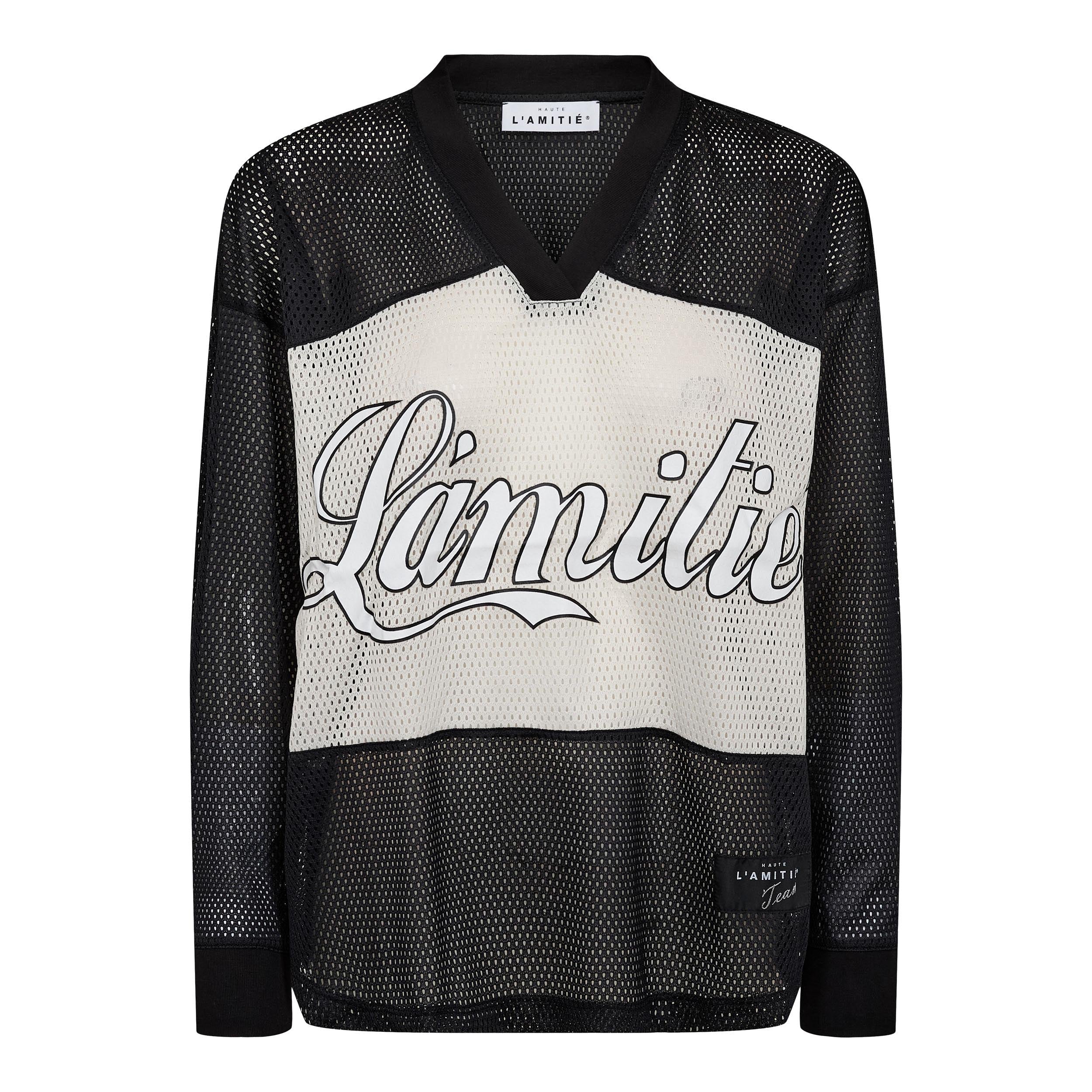 Den sejeste sporte bluse fra Haute Lámitié. Blusen har cool logo detalje foran og bagtil, v-udskæring og er lavet i let gennemsigtig net materiale.