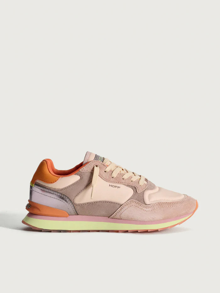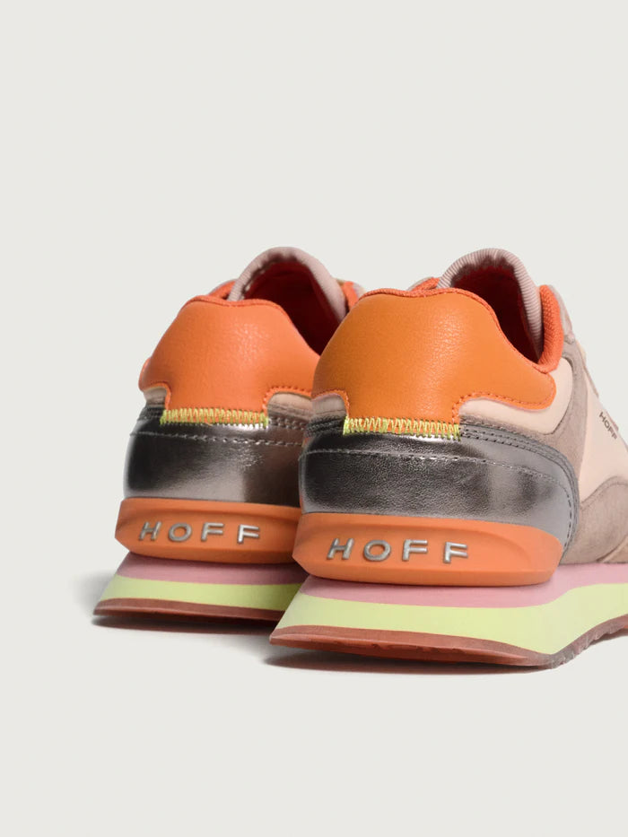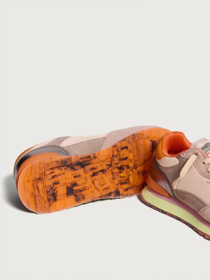 Cagliari sneakers er originale og moderne med en kombination af creme og kaki toner i kontrast til lyse sølv og orange detaljer. Deres vaffel-type ydersål har en linje i pastel pink og gul, hvilket tilføjer et karakteristisk touch til deres design. Disse sneakers er lavet med læder, nylon og et strejf af syntetisk materiale og er en alsidig mulighed for din urbane stil. Memory Foam (R) indersålsteknologien sikrer komfort hele dagen, mens tekstilforet giver blødhed mod huden. Sæt dem sammen med jeans og en basic T-shirt for et afslappet og moderne look.