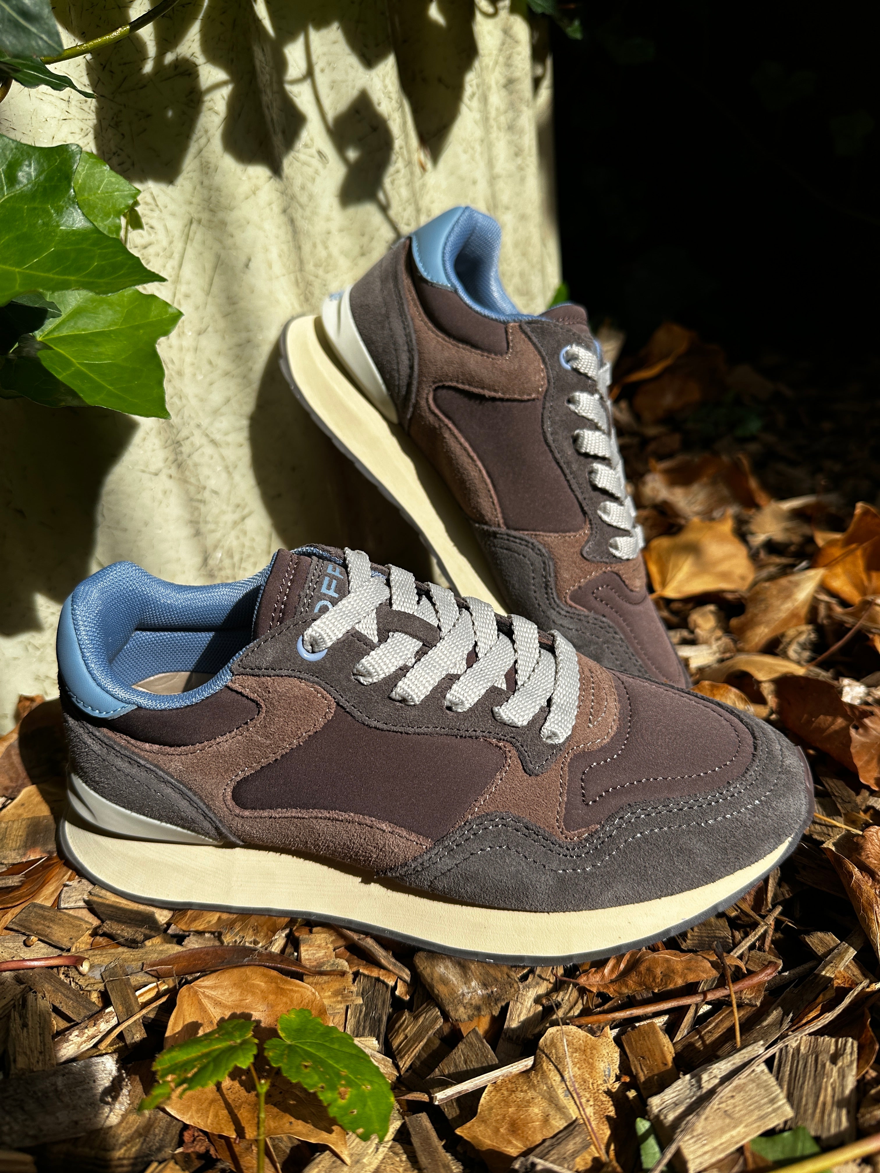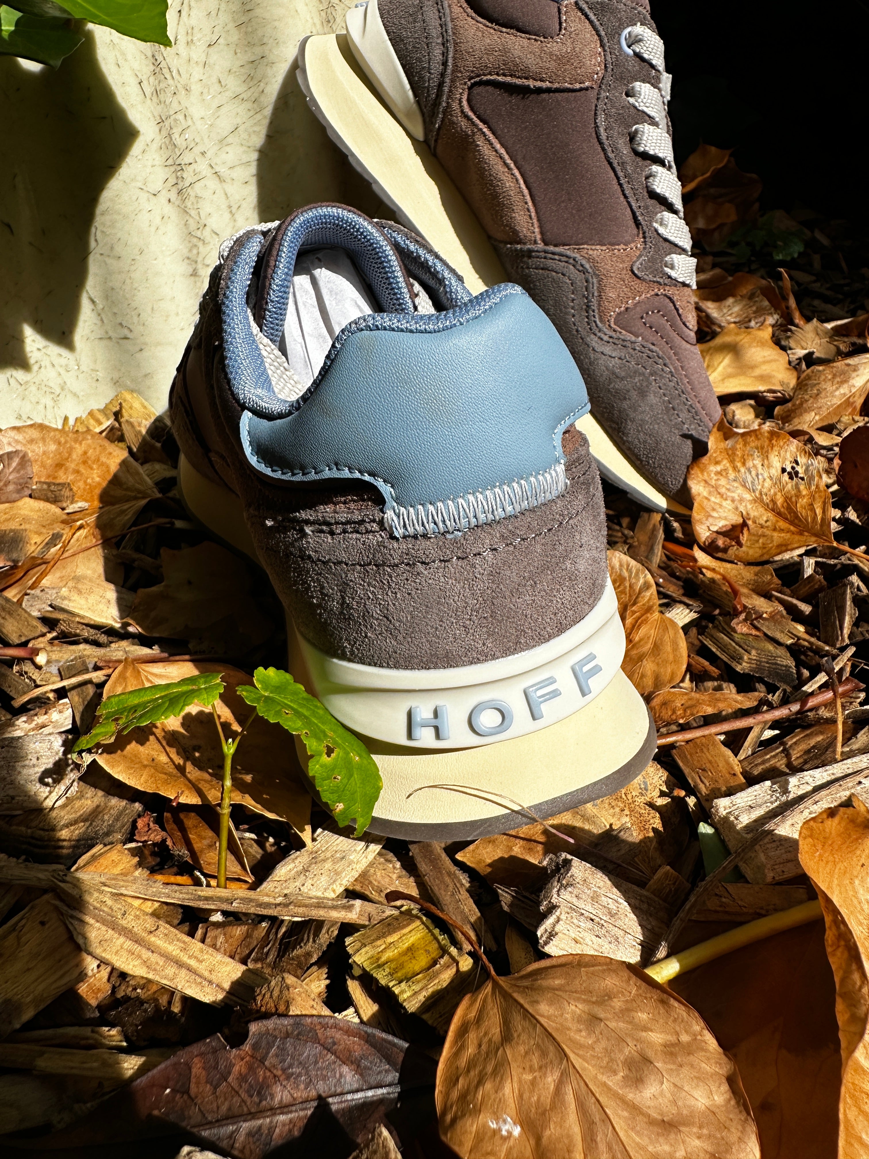 Skøn nyhed fra Hoff i lækre brunlige nuancer og med en blå detalje bagpå. En fantastisk sko i læder med en blød gummibund og memory- skum, som former sig efter foden. Disse sneakers er designet til at tilbyde optimal komfort og et moderne look.