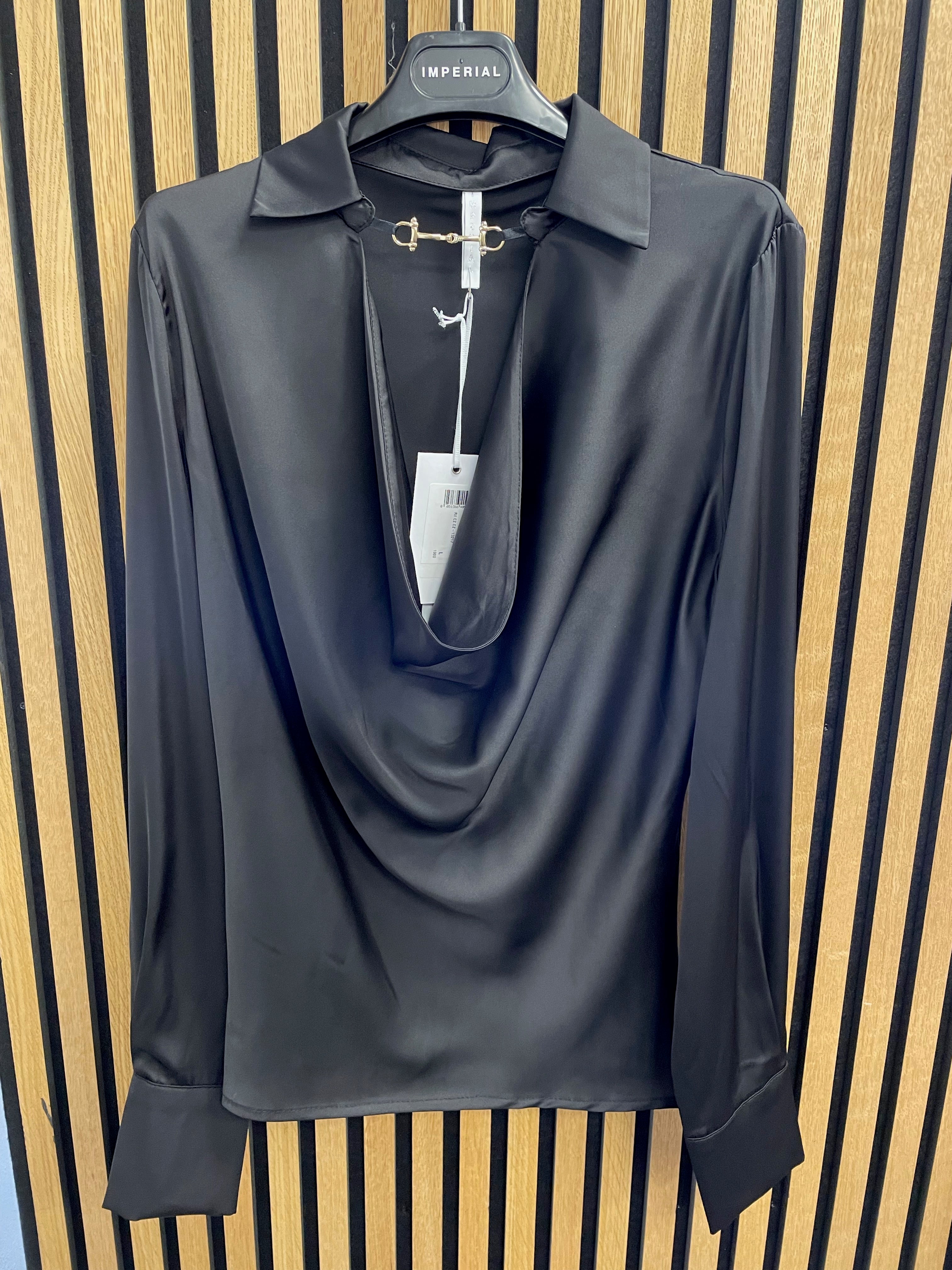 Cool bluse fra Italienske Imperial i strygefri kvalitet. Med lange ærmer, manchetter og smuk vandfalds halsudskæring.