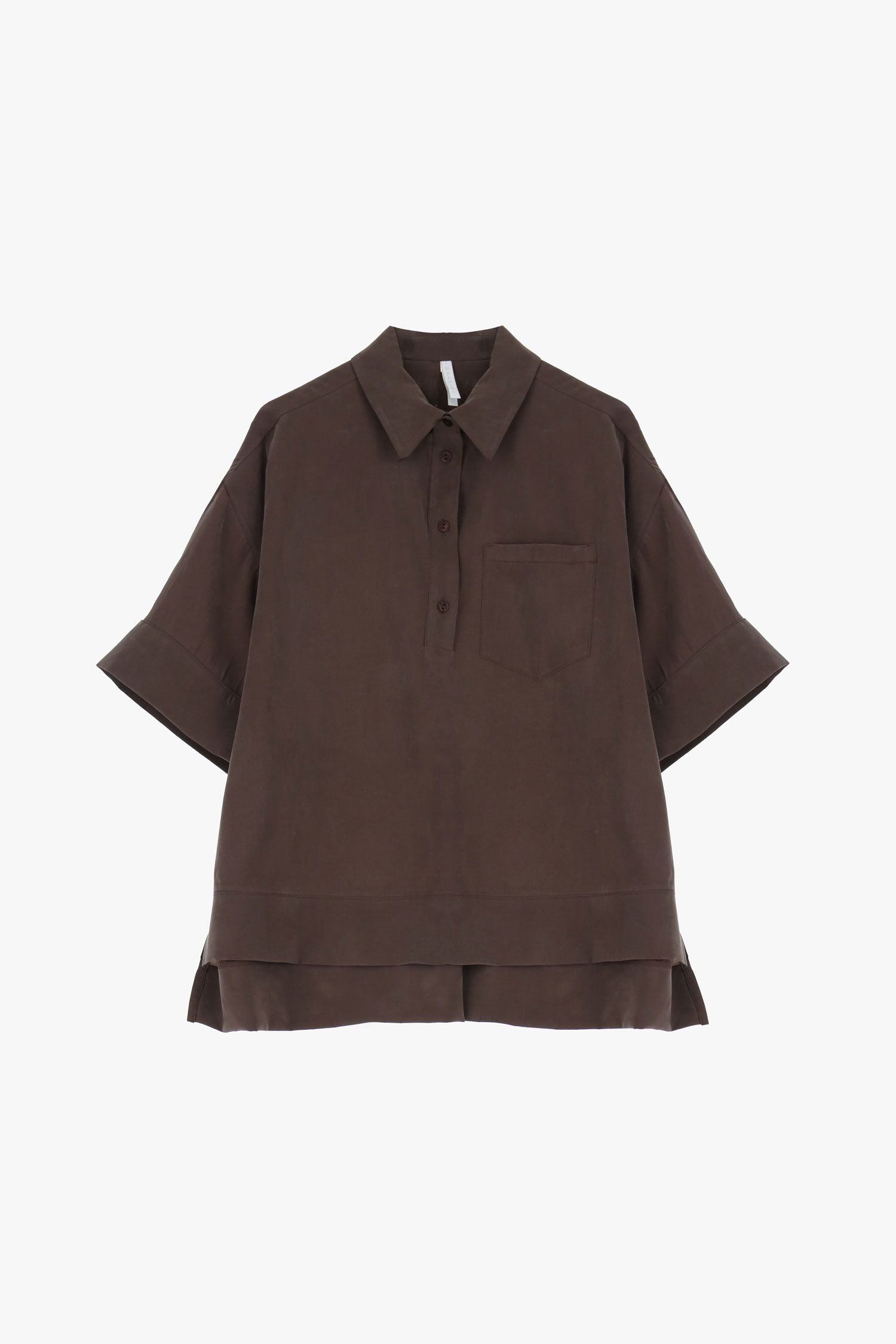 Skøn skjortebluse i en lækker åndbar kvalitet. Blusen har stolpelukning, lille ærmer og en løs pasform. Fullend med de matchende bukser.