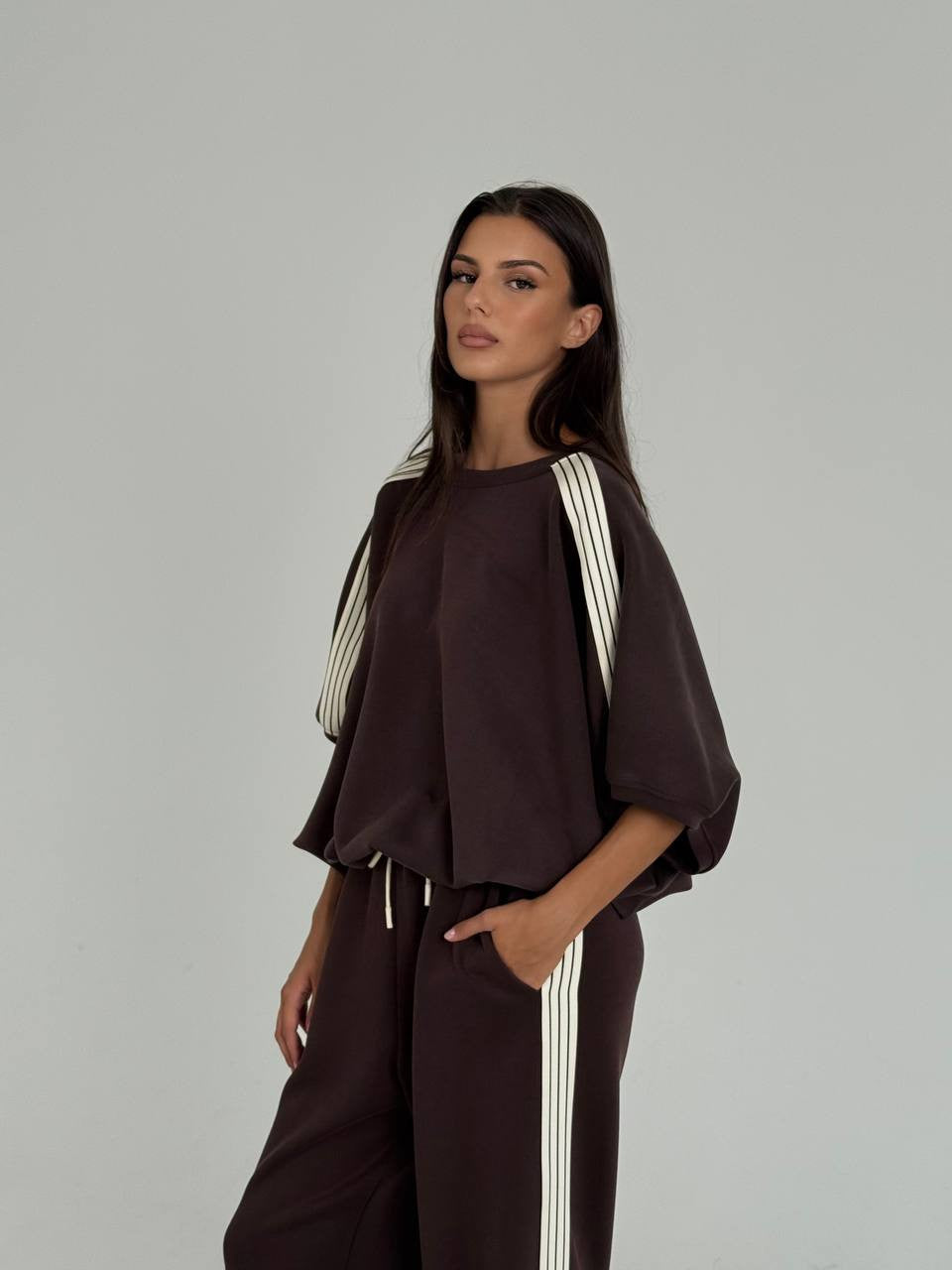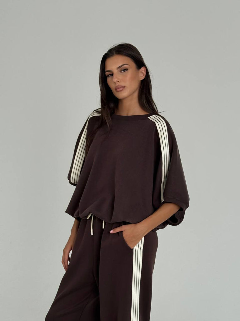 Oversized sweatshirt med korte ærmer, snøre i bunden og cool stribe ned langs armen. Sweatshirten er i Imperials luksuriøse italienske metervare ..smørblød, farveægte og eksklusiv!