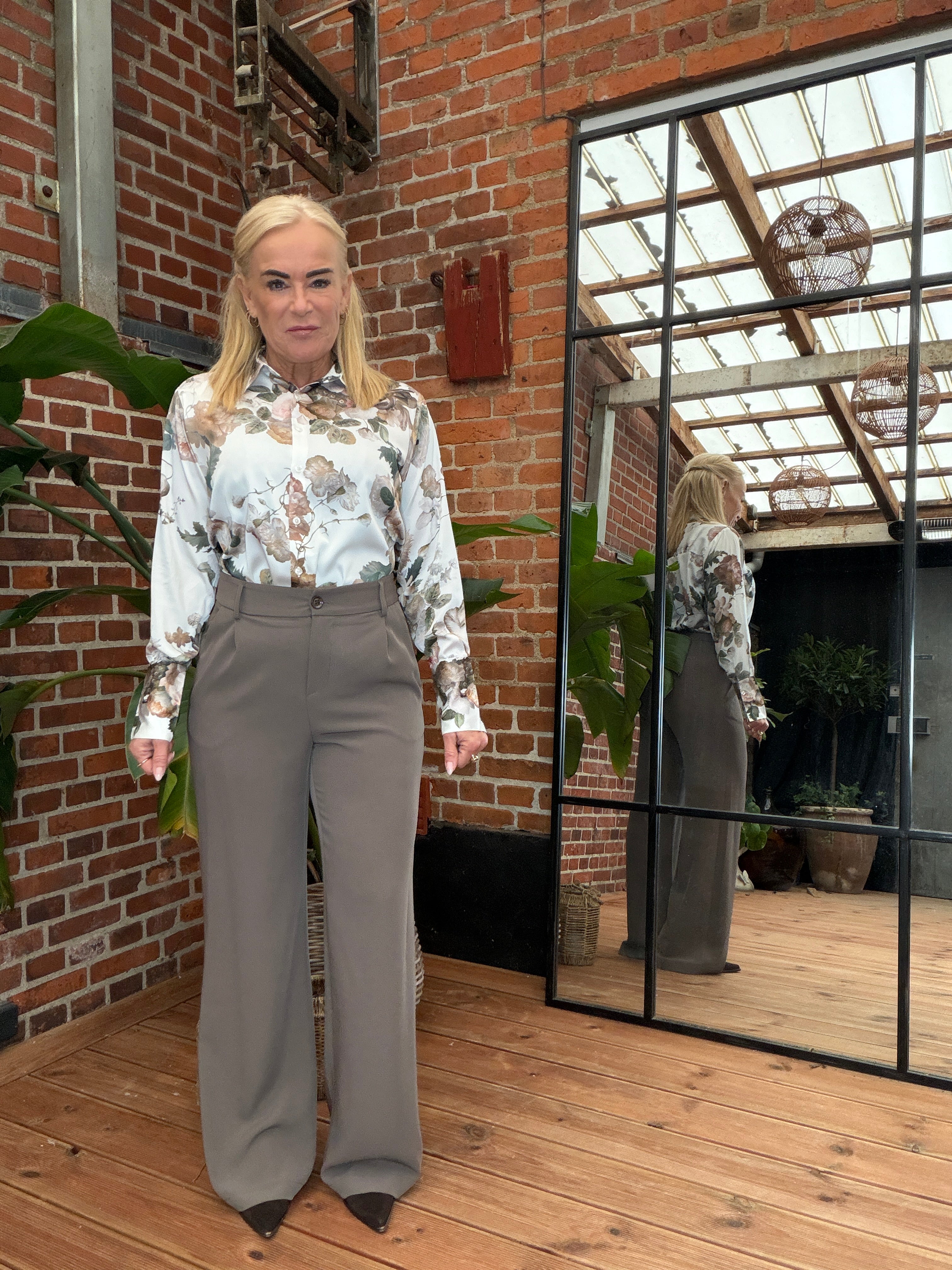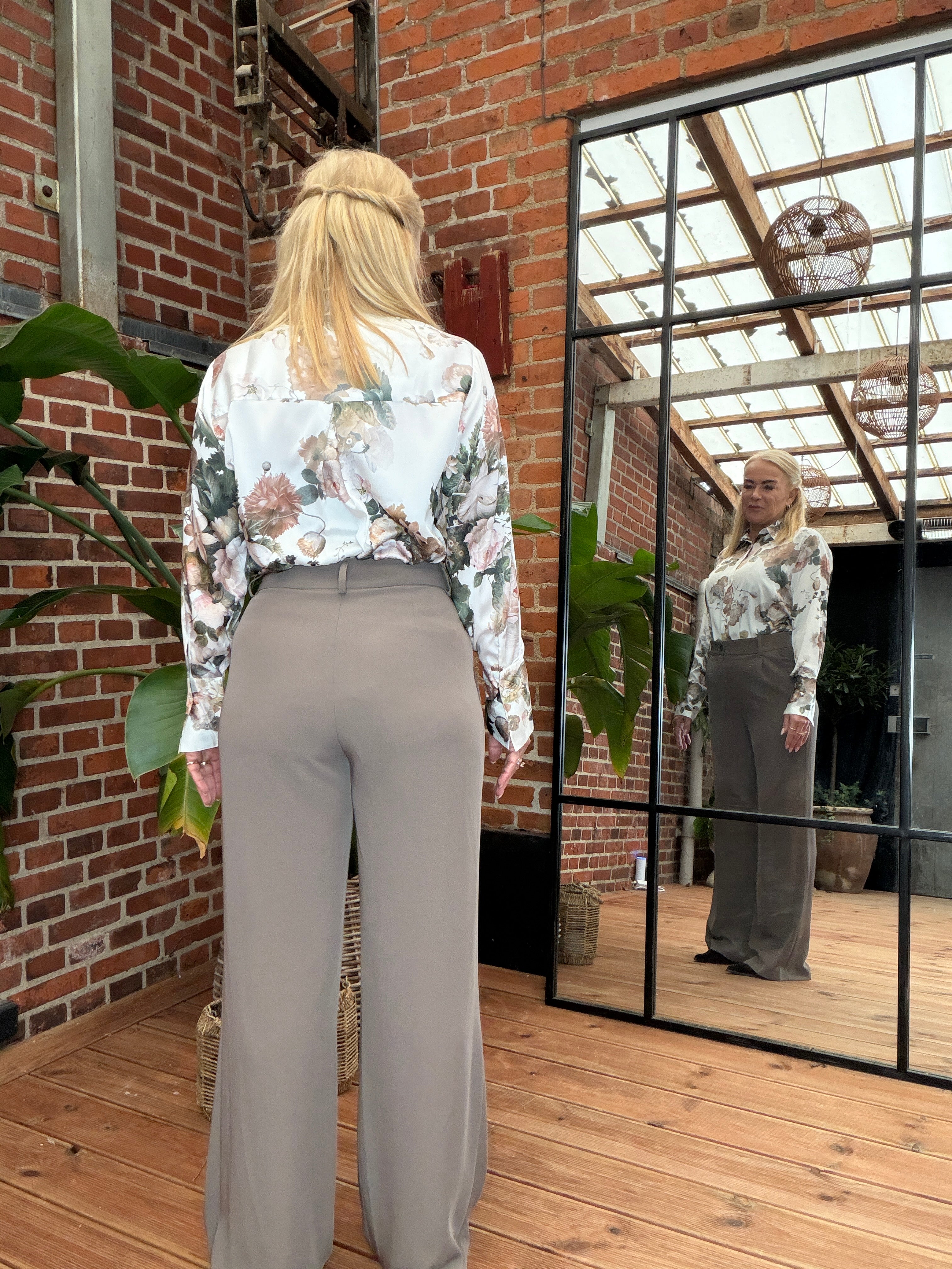 Smuk buks fra Italienske Imperial i luksus metervare, der er farveægte og ikke krøller. Med lige bukseben, lynlås og knap foran og bæltestropper . Et enkelt læg foran og skrålommer. NORMAL I STØRRELSEN - hvis du ligger mellem 2 størrelser anbefaler vi den store.