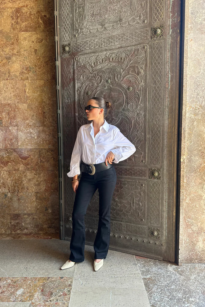 Tara er et par jeans i en blød og elastisk denimkvalitet. Udover at være en klassisk 5-lommemodel med lynlås og knaplukning foran, er Tara forsynet med en høj talje, en tynd pasform og udvidede ben.