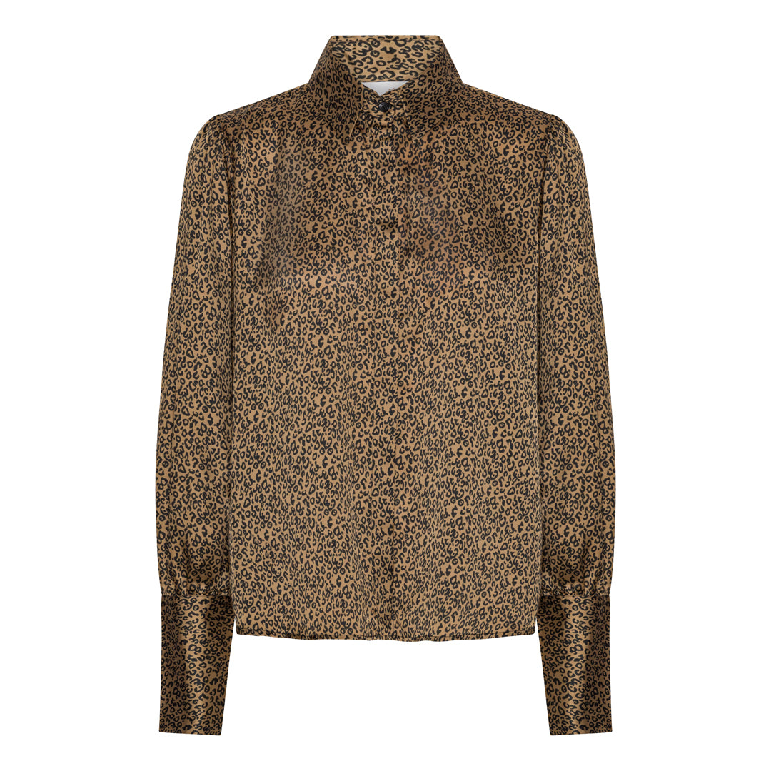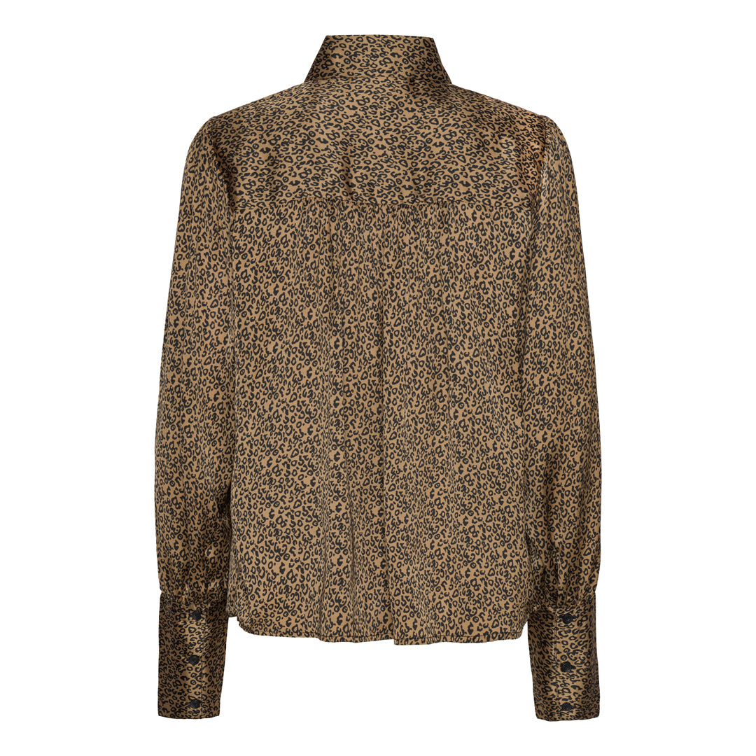 Skøn bluse fra Karmamia i flot mini leoprint. Model Honey er med krave, skjult knappelukning og manchetter. I Karmamias velkendte strygefri kvalitet.